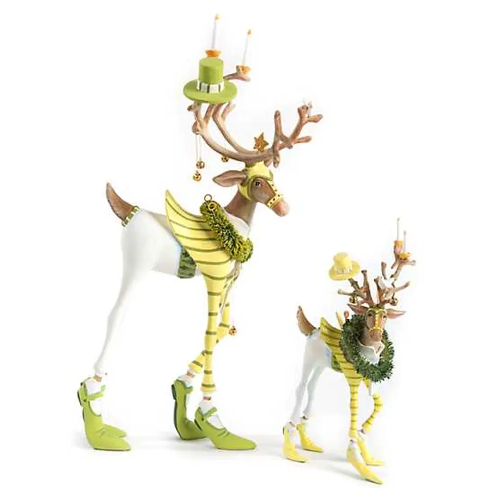 Dash Away, inspired by the Christmas classic “'Twas the Night Before Christmas," features Santa's eight reindeer ready to take flight around the world, assisted by their delightfully dedicated elves, Santa, and Mrs. Santa. In his top hat and striped tails, the Patience Brewster Dash Away Prancer Reindeer Figure is an endearing member of our Dash Away line. He's dressed from antlers to tap shoes, ready to entertain this holiday season.
