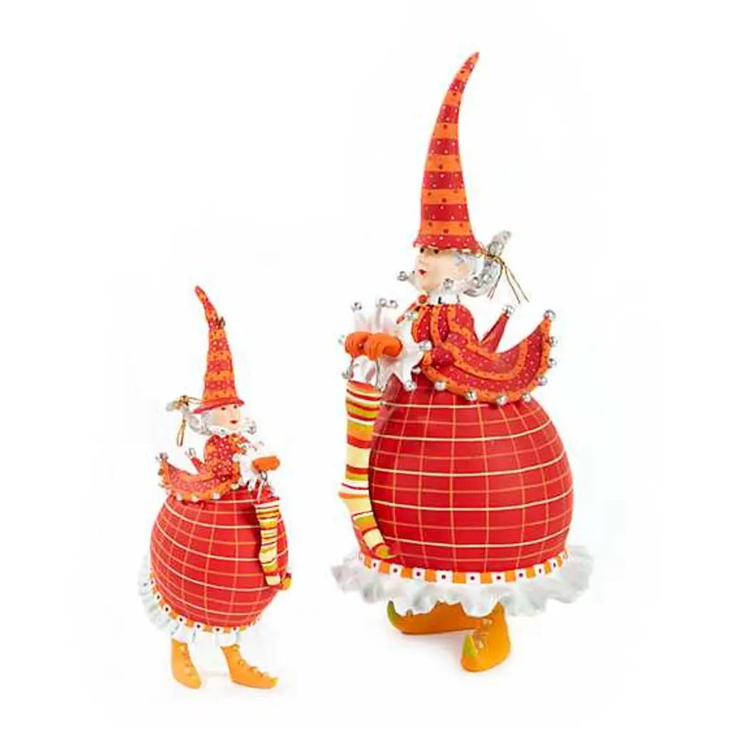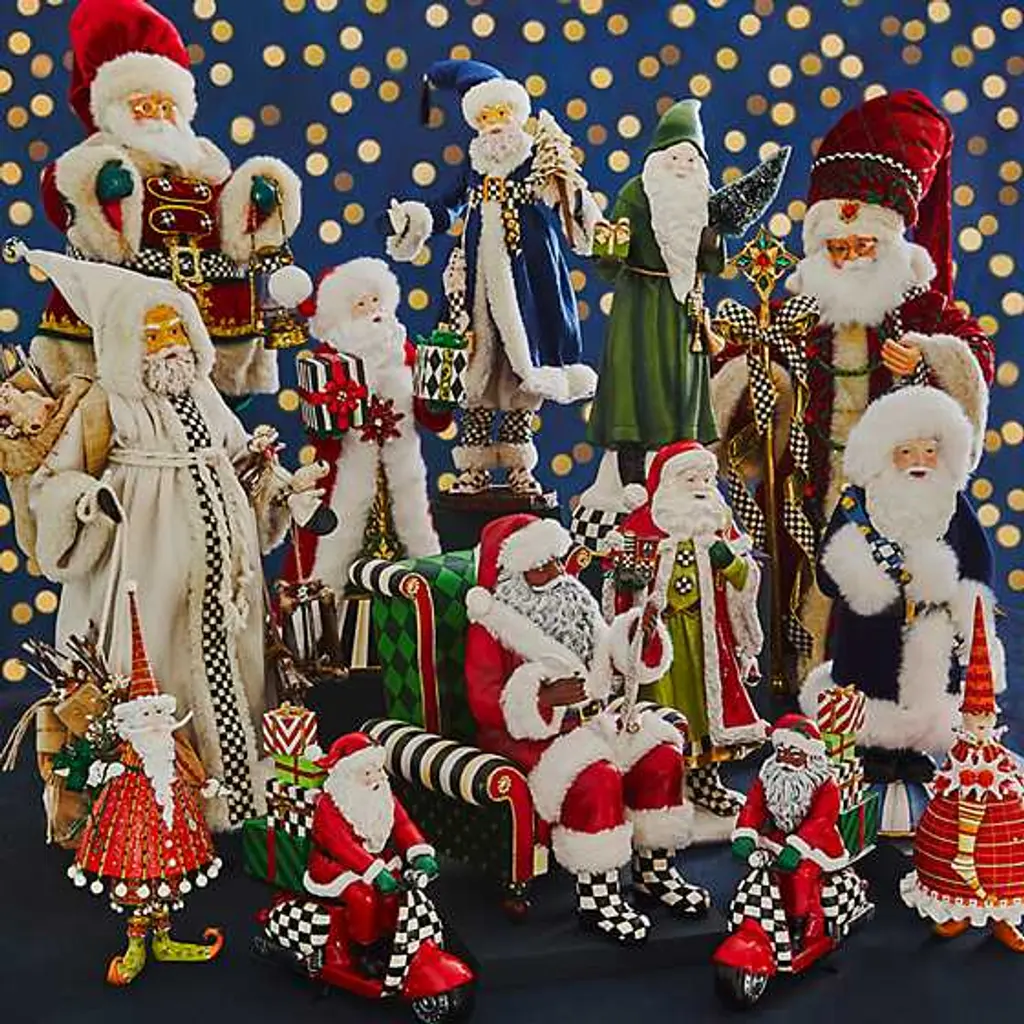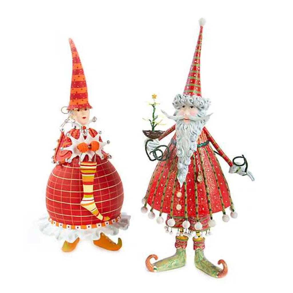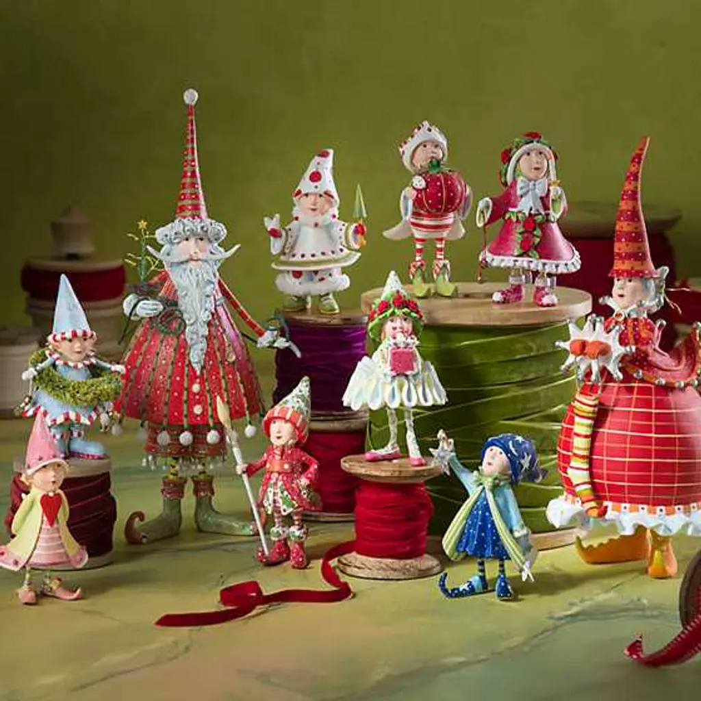 Dash Away, inspired by the Christmas classic “'Twas the Night Before Christmas," features Santa's eight reindeer ready to take flight around the world, assisted by their delightfully dedicated elves, Santa, and Mrs. Santa. The Patience Brewster Dash Away Red Mrs. Santa Figure has a red plaid bustle to coordinate with her orange and red cap and jacket. (She comes in white as Candlelight Mrs. Santa.) In her gloved hands, she carries a striped stocking she has just finished knitting in time to fill for Christmas. She pairs nicely with all Dash Away figures, but especially Nicholas Santa.