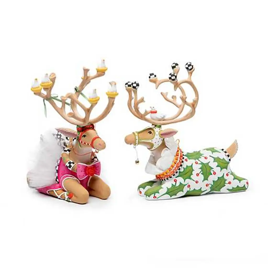 Dash Away, inspired by the Christmas classic “'Twas the Night Before Christmas," features Santa's eight reindeer ready to take flight around the world, assisted by their delightfully dedicated elves, Santa, and Mrs. Santa. The handmade and hand-painted Patience Brewster Dash Away Sitting Vixen Reindeer Figure features Vixen, colorfully attired from her antlers to her polka dot red boots, taking a short break on a busy Christmas Eve.