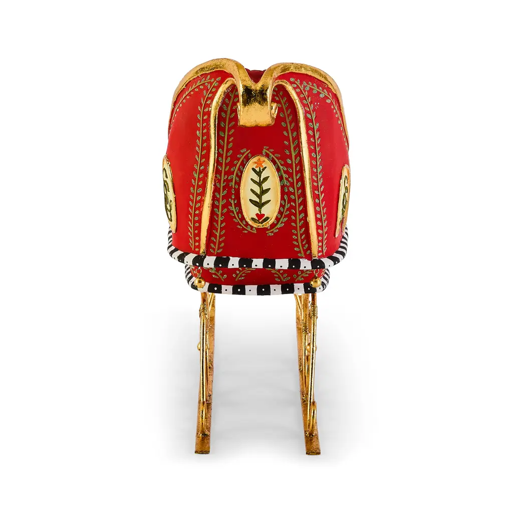 Dash Away, inspired by the Christmas classic “'Twas the Night Before Christmas," features Santa's eight reindeer ready to take flight around the world, assisted by their delightfully dedicated elves, Santa, and Mrs. Santa. The Patience Brewster Dash Away Sleigh Figure includes lots of extra detailfrom the tufted seat to the bells on the swirly gold-leafed runners. Each sleigh figure takes more than 30 hours to create by hand and is hand-painted by our artisans.