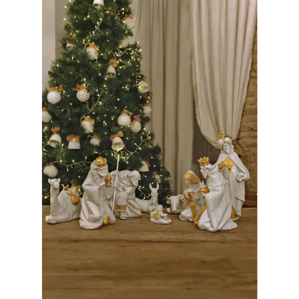Celebrate the spirit of Christmas with the Nativity collection from Patience Brewster by MacKenzie-Childs. An ever-expanding group of handmade and hand-painted figures tells the story of the first Christmas in a colorful and captivating way. The Patience Brewster Nativity Mini Figures Introductory Set is a detailed mini-scale version that fits anywhere. It includes the Holy Family, Three Kings, and one each of Camel, Horse, Elephant, Kneeling Angel, the Star, a gold-leafed stand, and shelter. Choose from our mini animals and angels to expand the scene. Set of 13.