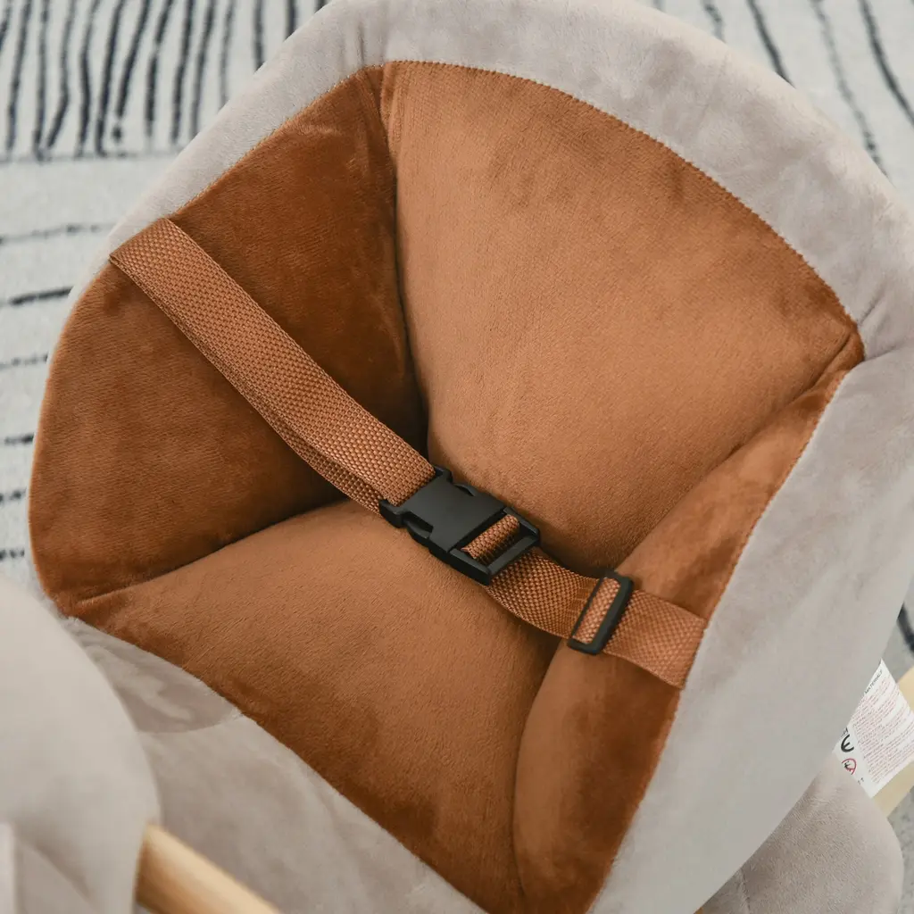 Product Overview:Let your child experience fun and excitement with this adorable bear-themed rocking horse. Designed with a soft plush exterior, this ride-on toy is perfect for toddlers aged 18-36 months. The interactive features, such as sound effects when pressing the bear's ear, offer an immersive playtime experience while building balance and confidence. The stable wooden base and safety belt ensure your child is secure while riding.Product Features:Specifications:Additional Information:This adorable bear rocking horse is designed to offer both comfort and safety. With its soft plush material, fun interactive sound feature, and sturdy wooden base, it is the perfect first rocking horse for toddlers. Whether it's for a fun play session or a soothing rocking time, this ride-on toy is sure to become a favorite in your child's playroom.