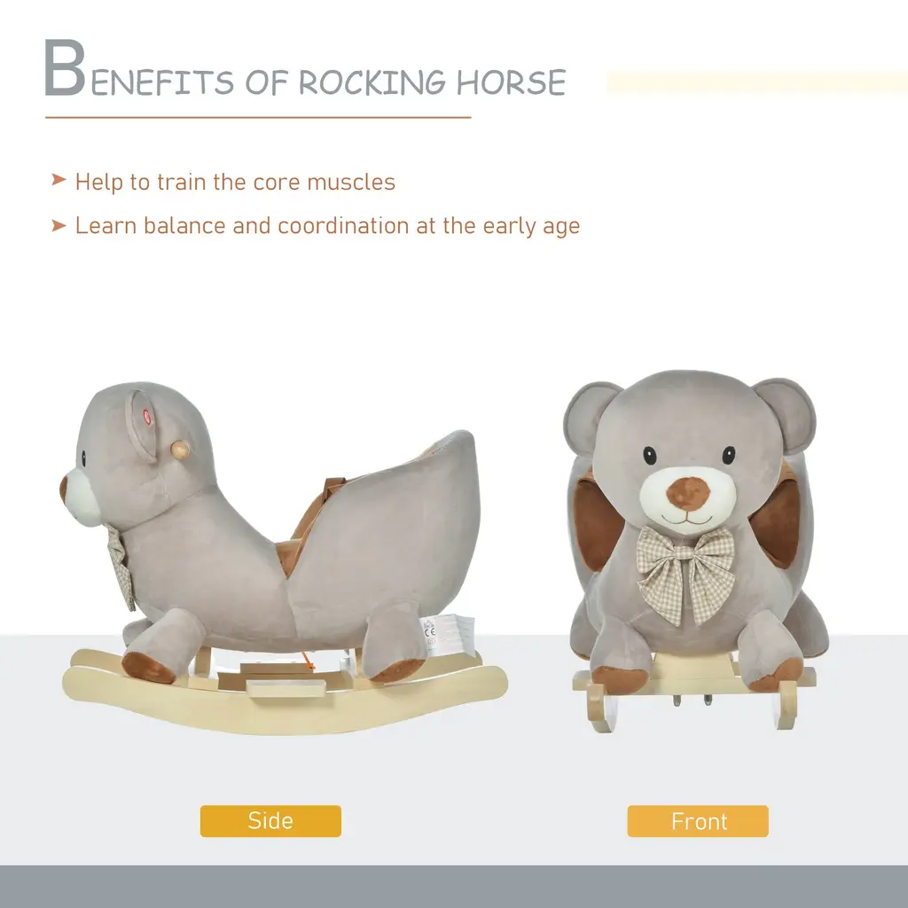Plush Bear Rocking Horse For Toddlers With Safety Belt, Interactive Sounds, And Soft Plush Fabric - Ride-On Toy - Gray