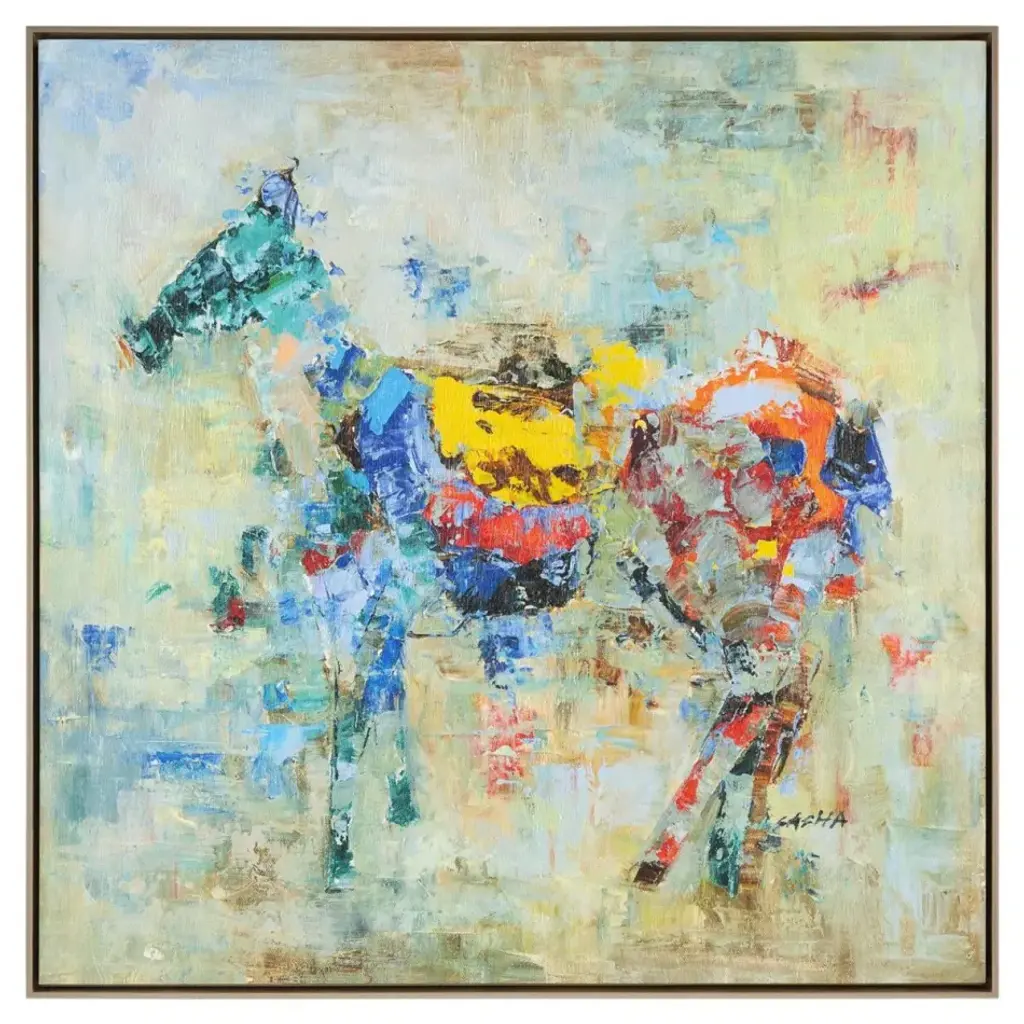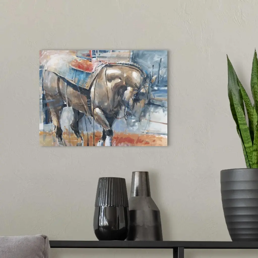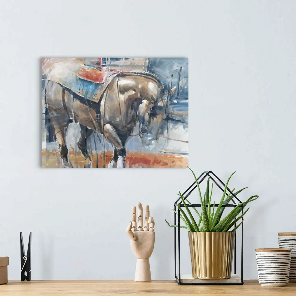 Complementary colors in delicate brush strokes allow the viewer to finish the visual story of this Belgian pulling horse.