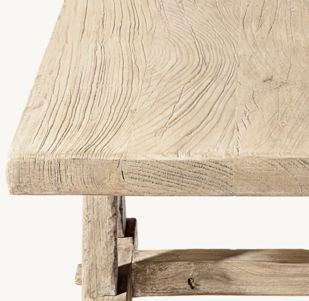 Inspired by a timeless, primitive design, our Sawhorse table is handcrafted of reclaimed elm timbers, lending rustic character to the stable, functional form. Craftsman-built with mortise-and-tenon joinery, the classic A-frame base supports an expansive top that showcases the dry brushed, deeply textured woodgrain. SHOP THE ENTIRE COLLECTION