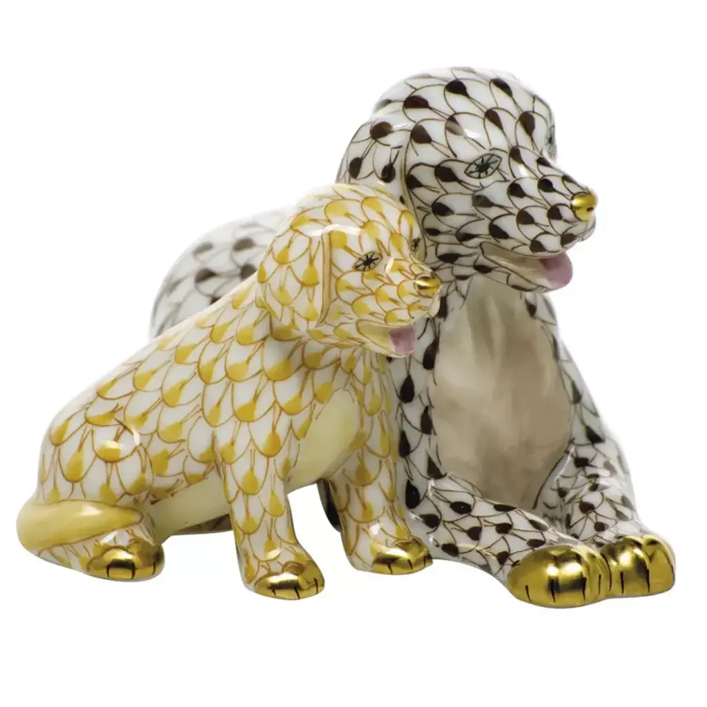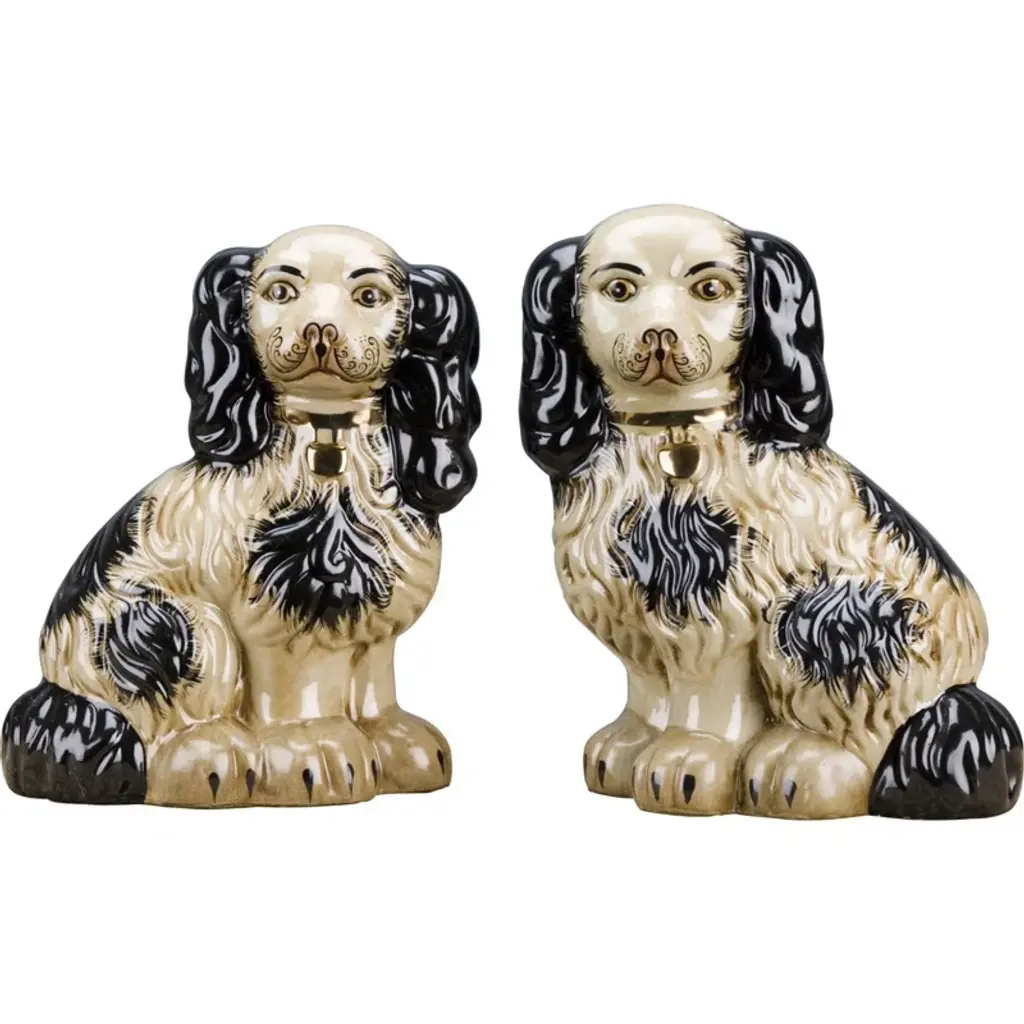 A pair of dogs inspired by the Staffordshire antiques. These lovely animals come as a pair in a variety of colors. Note the attention to detail that reflects the finest of Staffordshire dogs where the front foot is separated from the body. Designed by Shayla Copas.