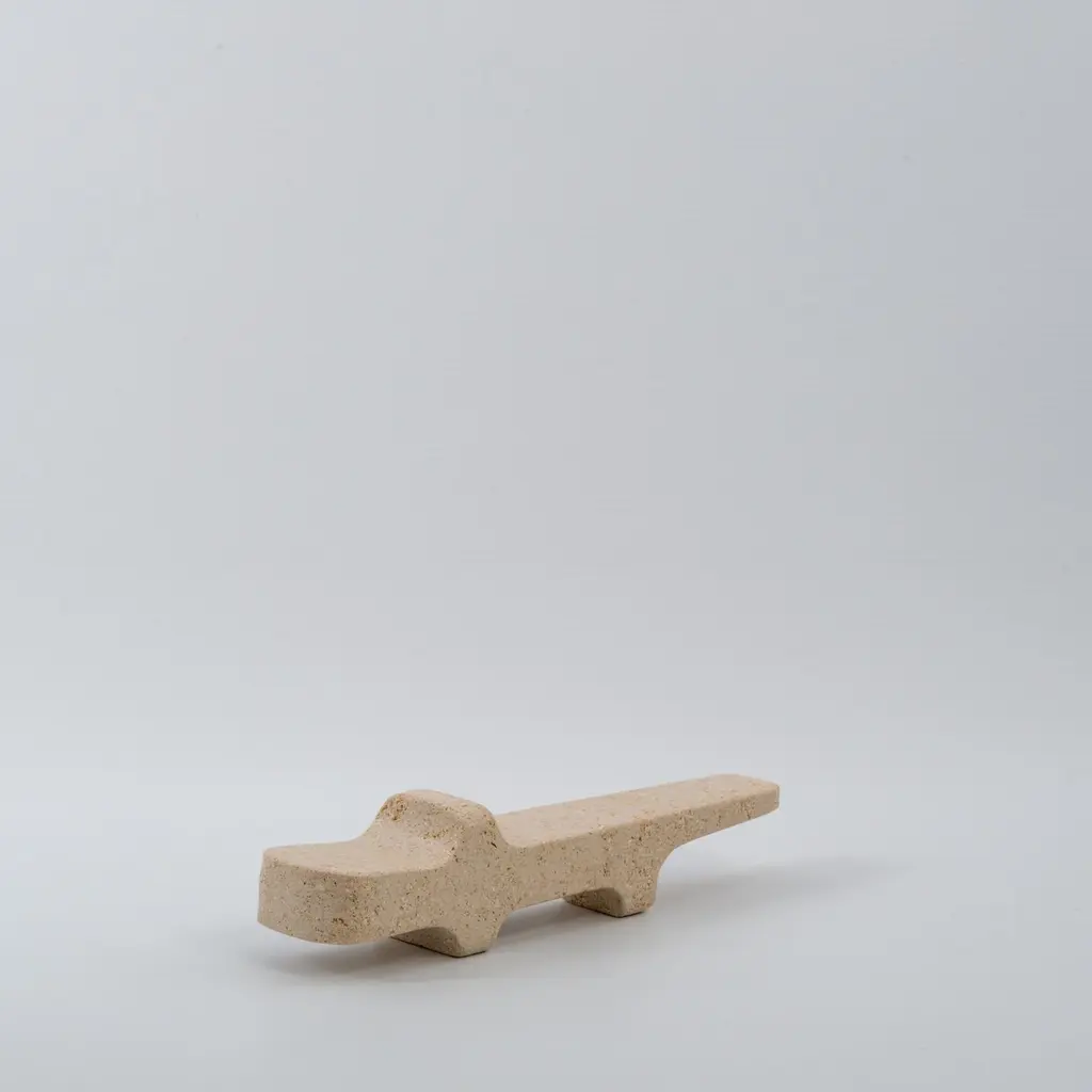 The Safari Crocodile Figurine is a fine example of artisanal craftsmanship made from sand-colored Mazzaro stone. This carving can be used as a decorative element in a lounge or as a paperweight in an office.