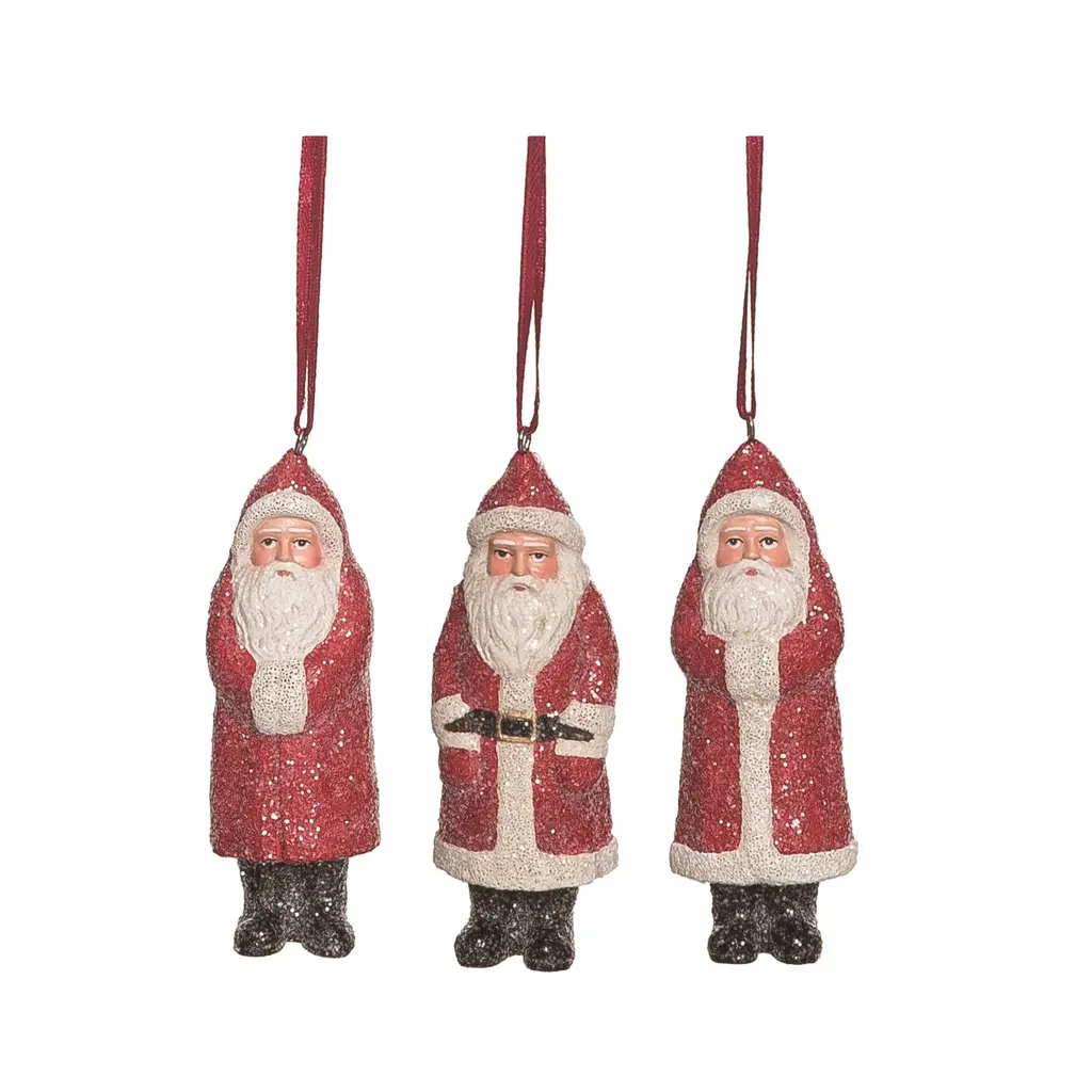 Ring in the holiday season with this beautiful set of Santa Figurines. Featuring three assorted designs, the realistic painted finish paired with the traditional red, white, and green color scheme makes this set a great addition to any style of holiday decor. The quality paper pulp composition is sure to last for seasons to come. Display the pieces together to make a statement, or display them alongside your other holiday decor to add interest and character to the space. - Measures 3.25 x 4 x 8.75" each - Material: Paper Pulp - Recommended for indoor use only