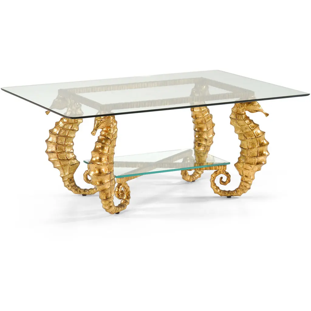 Cast Aluminum With Gold Leaf Beveled Glass Top