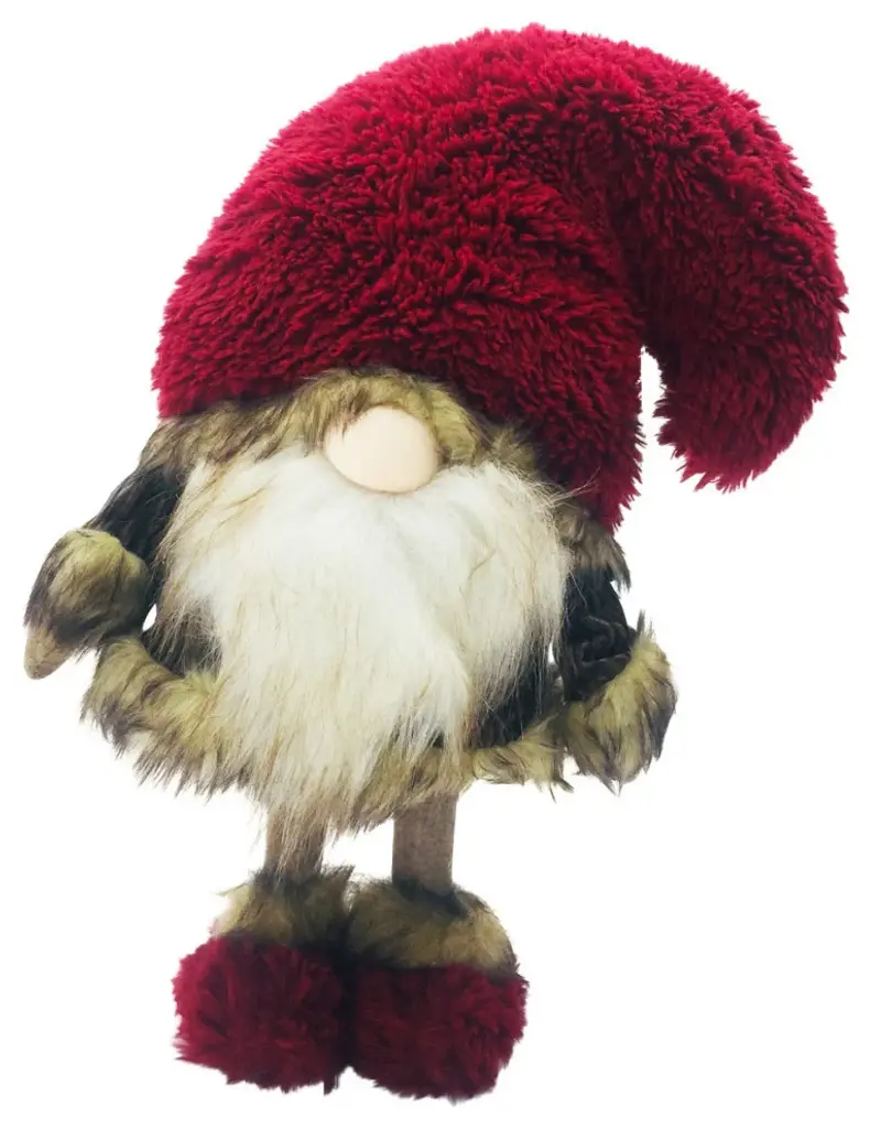 Smiling Woman Gnome Table Top Christmas Figure, Red And Gray, 13.5"