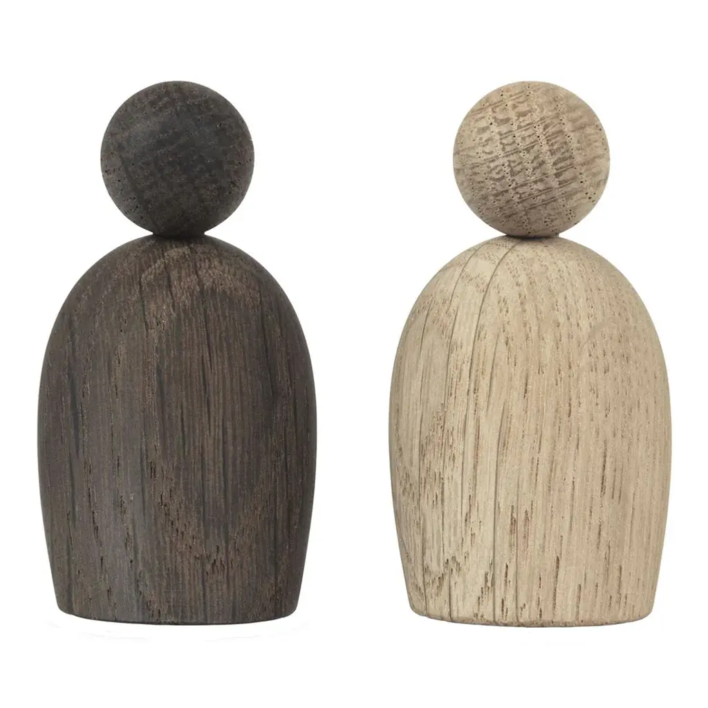 This pretty pair of sparrows was designed by Kay Bojesen and is made of natural oak and smoked oak. The two sparrows are 2.4" tall and have a magnet inside so they can be placed on a plank with other sparrows.