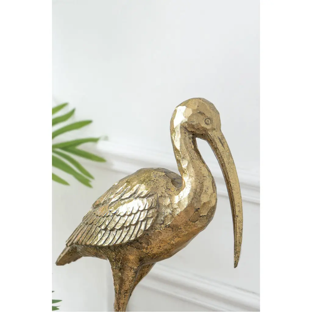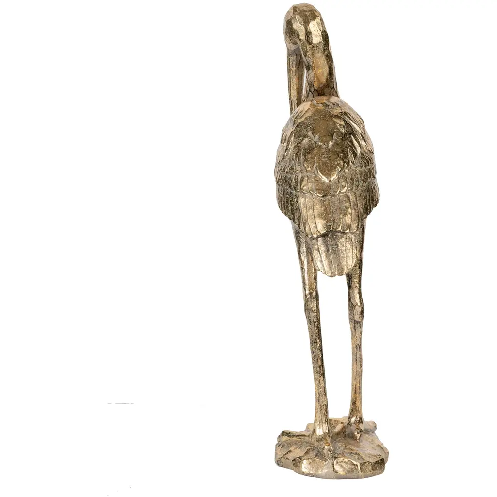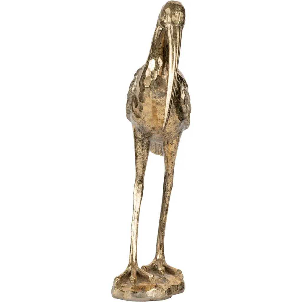 Standing regally, this elegant crane figurine captures the natural beauty of this stately bird with a gleaming, gold finish and crisp shine. This impressive piece adds a sophisticated touch to a grand foyer, chic living room, or lavish master bathroom. Enjoy the stunning beauty of this majestic bird as it perches atop a mantle, bookshelf, or welcomes guests from an entryway table.