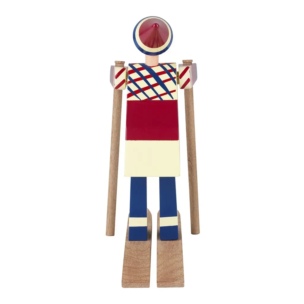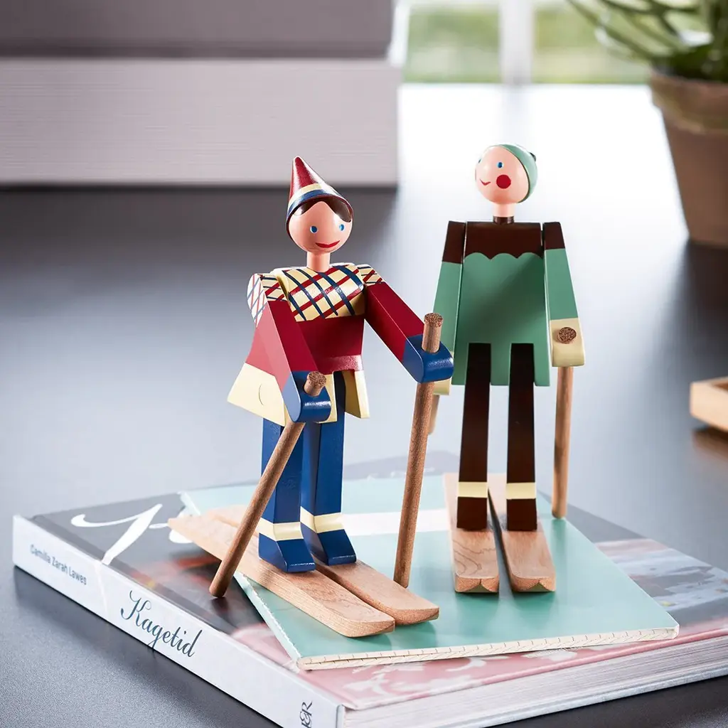 Kay Bojesen designed these two happy skiers towards the end of the 1940s. The happy girl skier with the red cheeks and big smile is called Datti, which was the pet-name of Kay Bojesen's daughter-in-law Ruth (married to Otto). The name of the male skier, Boje, was the pet-name of Bojesen's son Otto. The original wooden figures are very rare, as they were only produced in small series. With their cheerful expressions, this pair of skiers always make people smile, and they are all set to conquer Danish living rooms and homes again in this relaunch. Both skiers are made of painted beech in the same way as the Royal Guardsman. The skiers stand 6.1" tall.