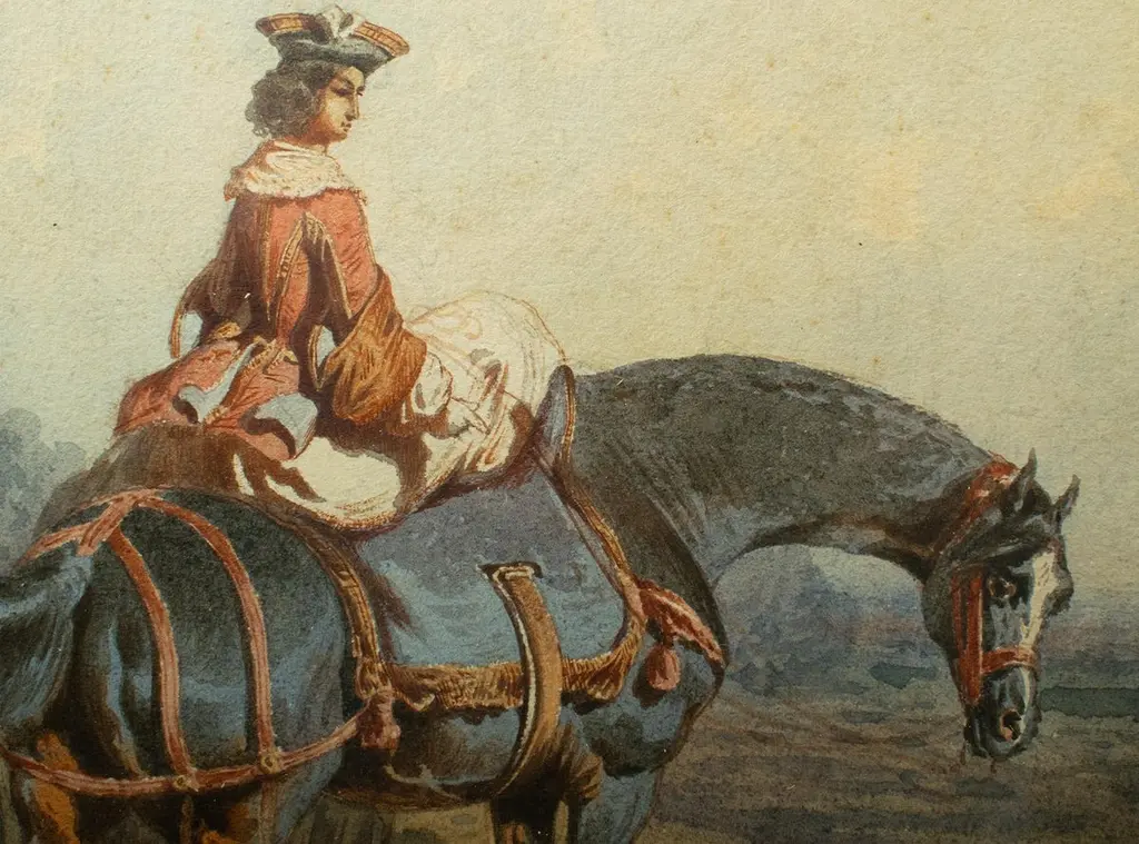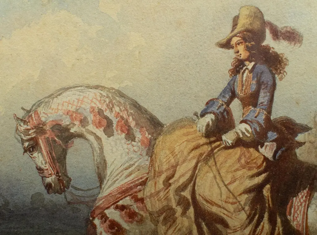 Théodore Fort (1810–1896) - Pair Of Watercolours - Elegant Ladies On Horseback