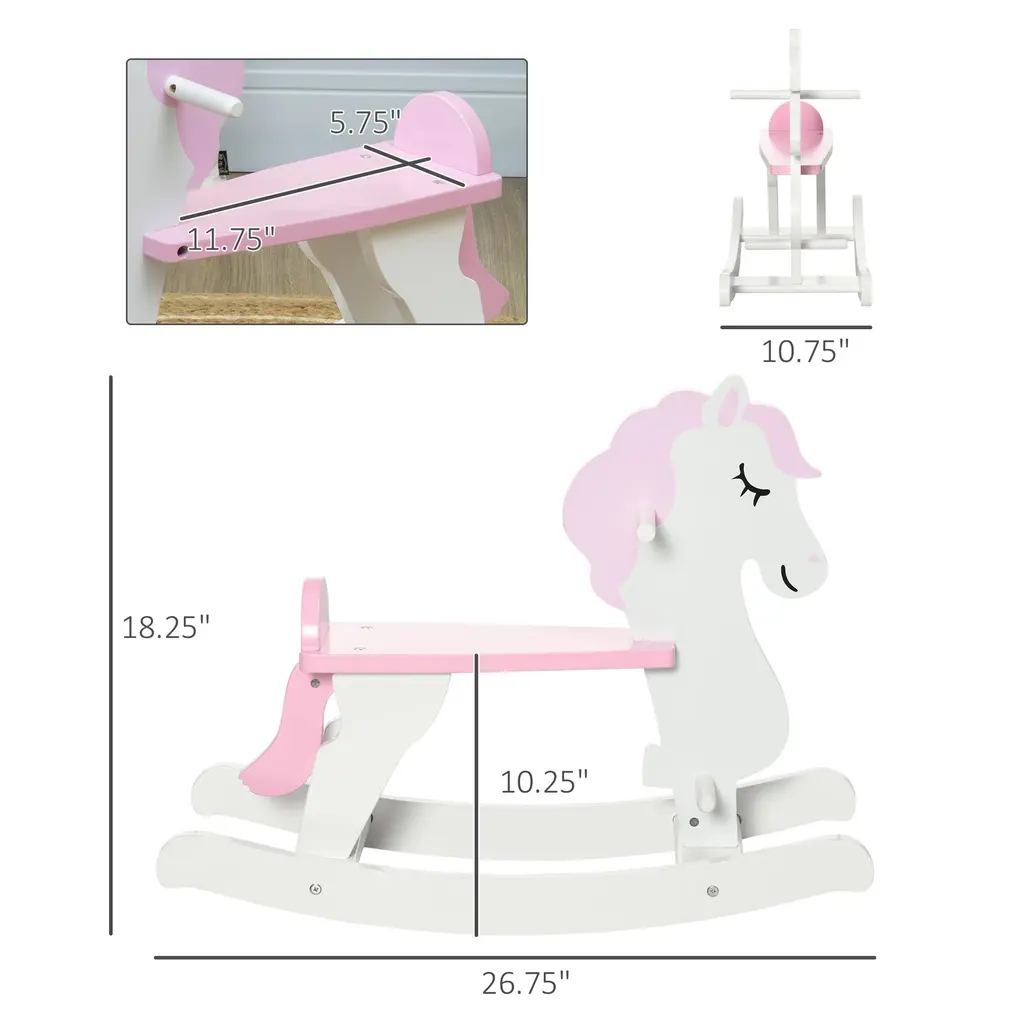 Toddler-Friendly Pink Rocking Horse With Backrest, Pedals, And Handles For Ages 1-3, Space-Saving Design - Pink