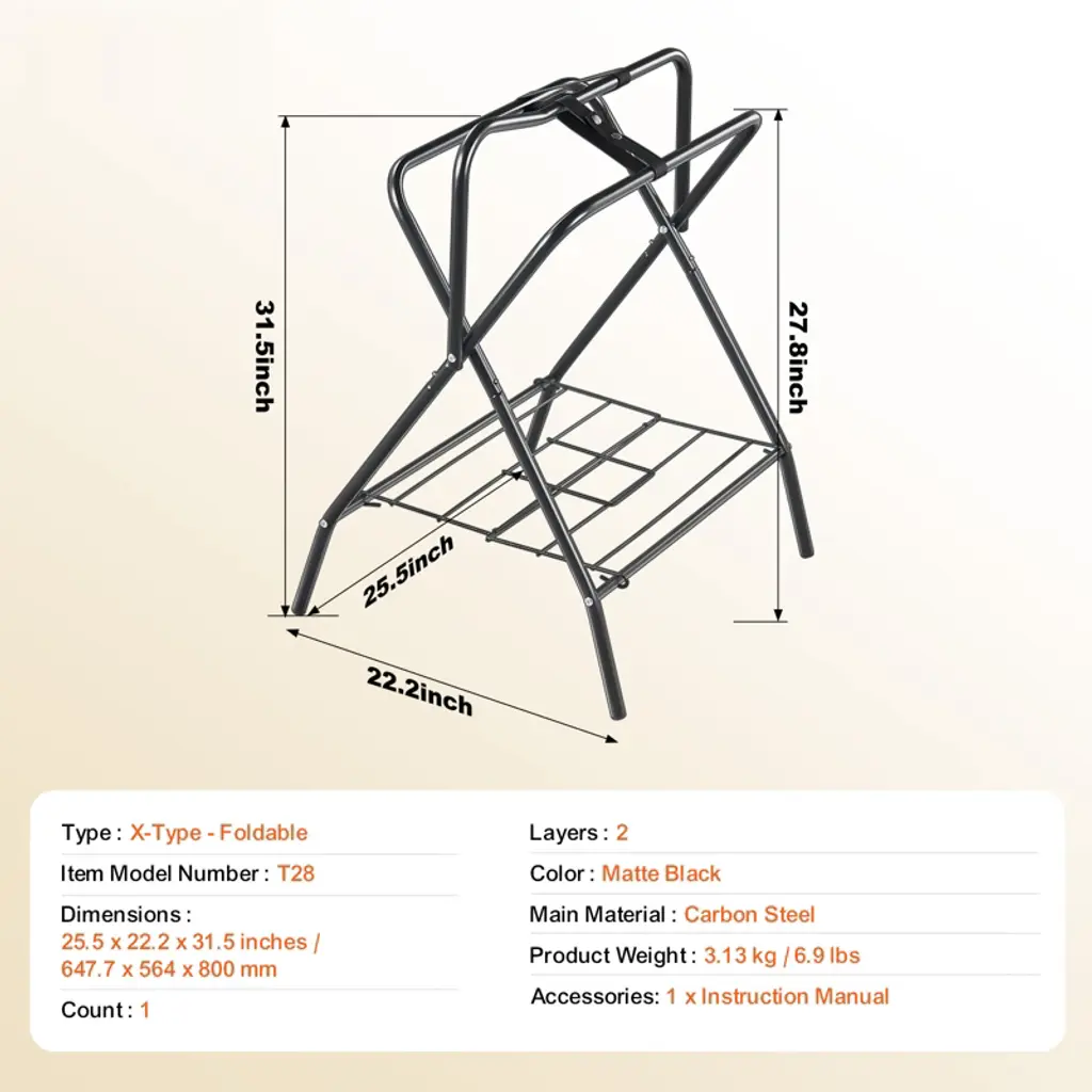 Vevor Folding Saddle Rack, 28 X 19 X 37.5 In, 2 Packs Freestanding Horse Saddle Stand, Heavy Duty Steel Saddle Rack For English & Western Saddles