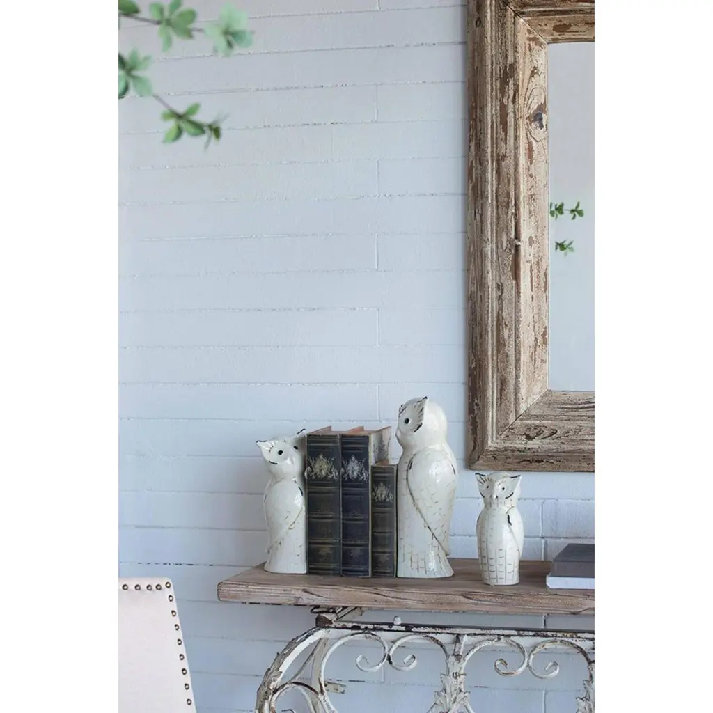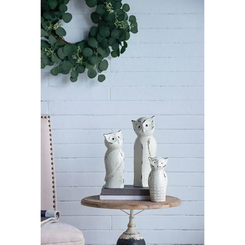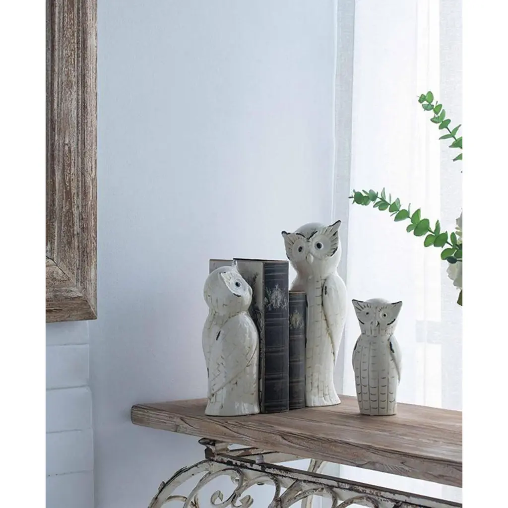 The Vivek White Owls Trio features a vintage style for a charming sense of retro nostalgia. These pieces are crafted from porcelain with a weathered off-white finish to create an illusion of age and wear like well-loved keepsakes. Each set includes three owls in varied sizes.