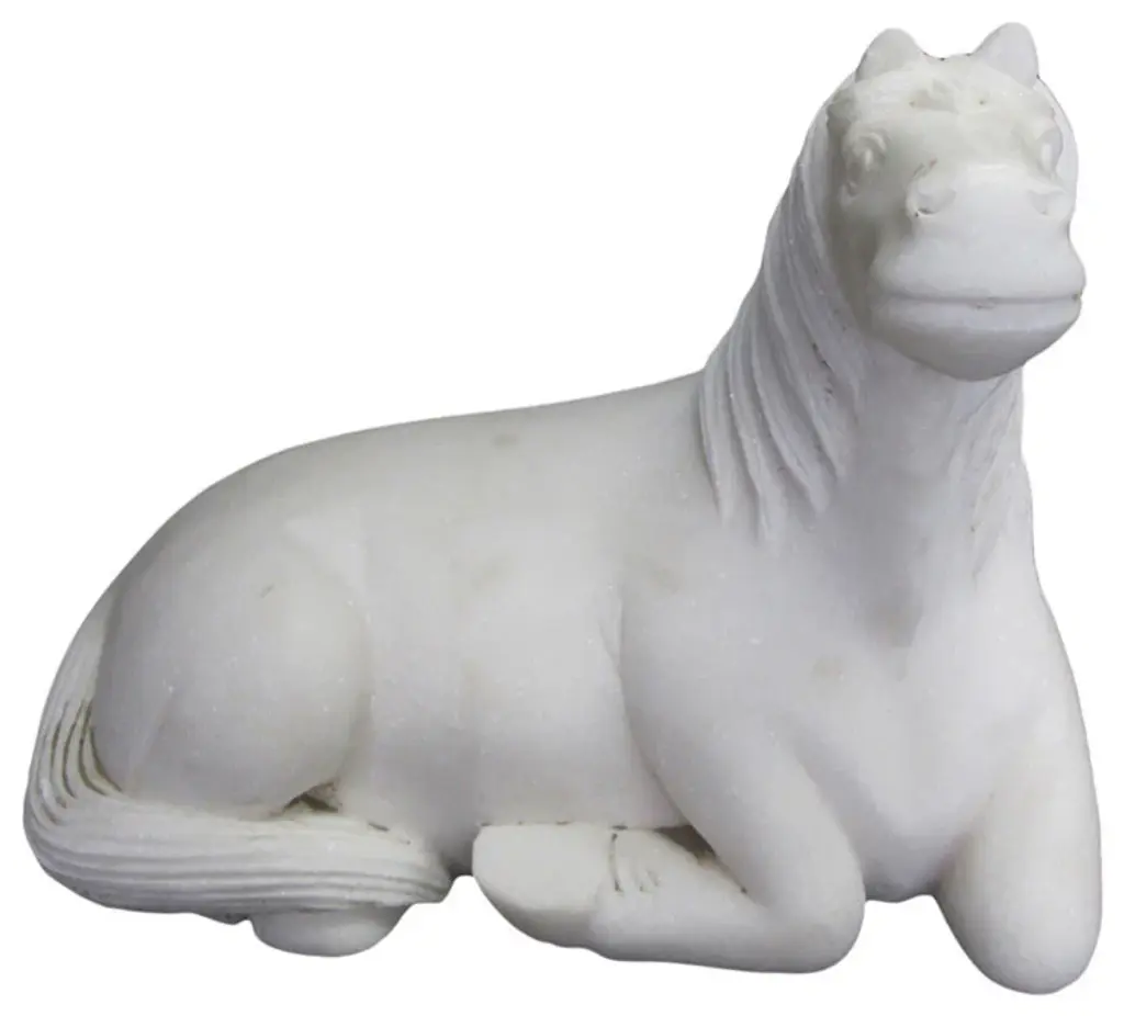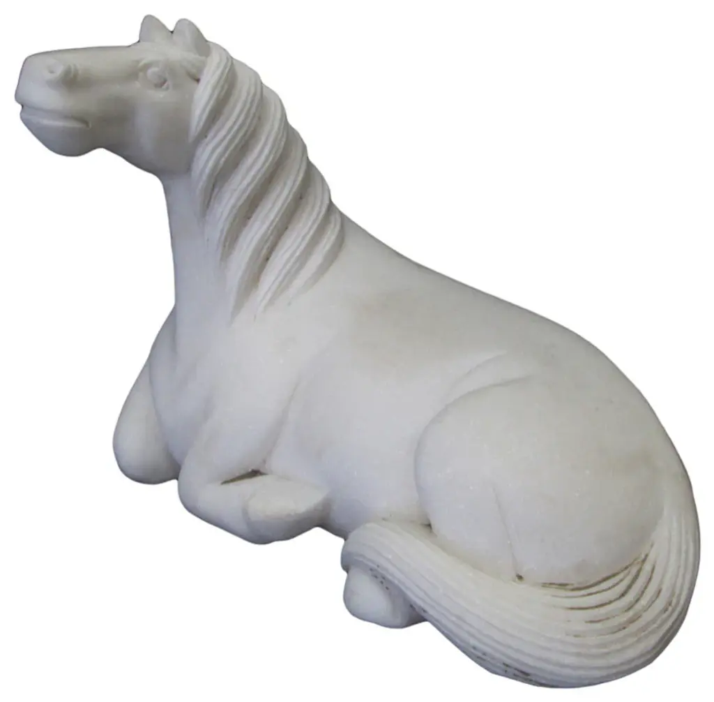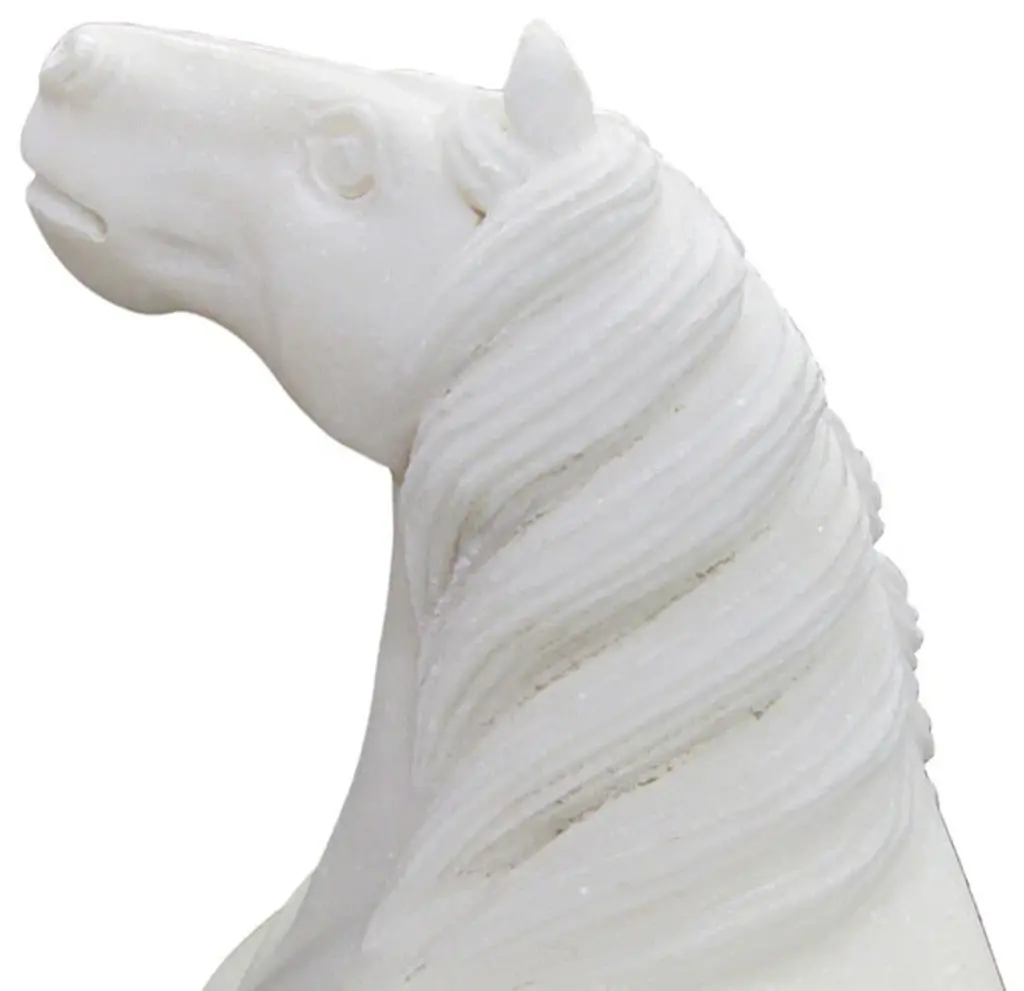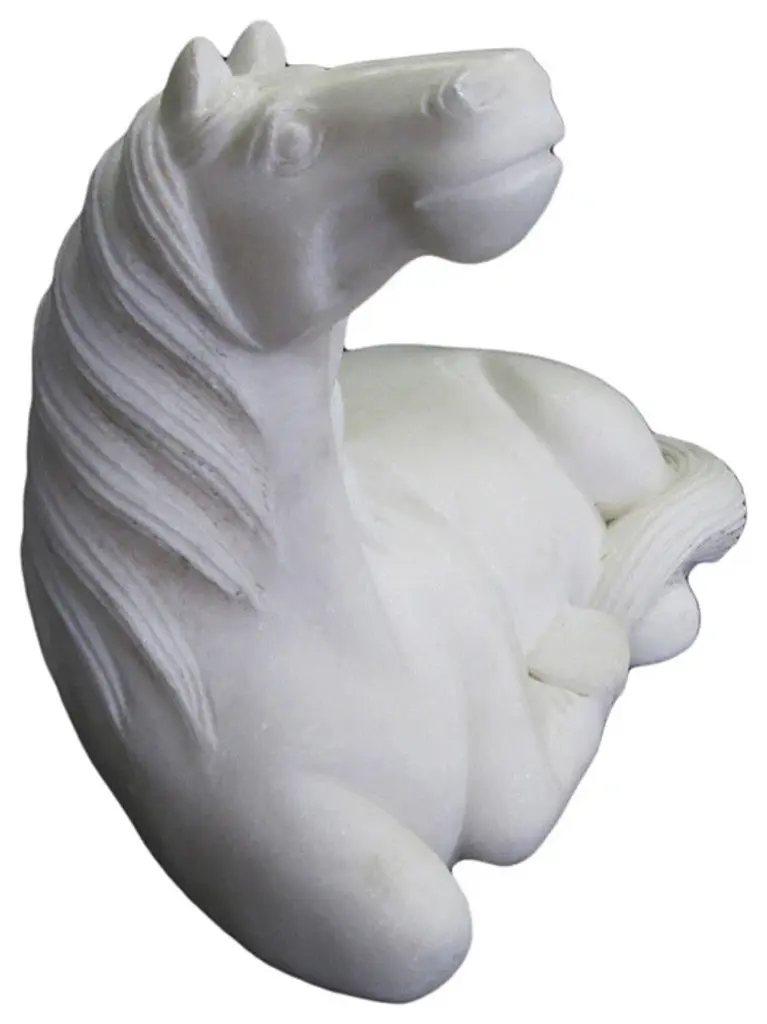 This white horse statue is made of solid marble stone. Its'' weight is very heavy, and the carving shape is very nice and smooth. That would be nice to be used as garden decoration or door stop.Dimensions: 17"x x 11"d x 14.25"hOrigin: ChinaMaterial: Marble Stone (Heavy)