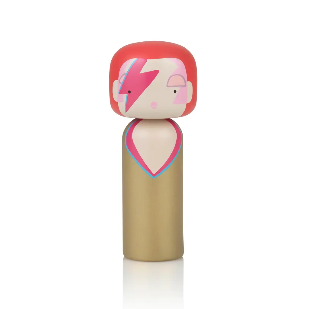 Major Tom to ground control A pioneer in the music industry as well as the personas he created and took on, David Bowie was a rock legend and icon in his field. The Ziggy Aladdin Sane Kokeshi Doll from Lucie Kaas showcases his most legendary personas and features the unforgettable lightening bolt makeup that is known throughout the world today. David Bowie's fearless innovation and defiance of the status quo ensures his presence will be with us forever. Crafted from superba wood, this hand-painted doll is ready to be put on display and bring a touch of rock and roll to your living space. Why We Love It: