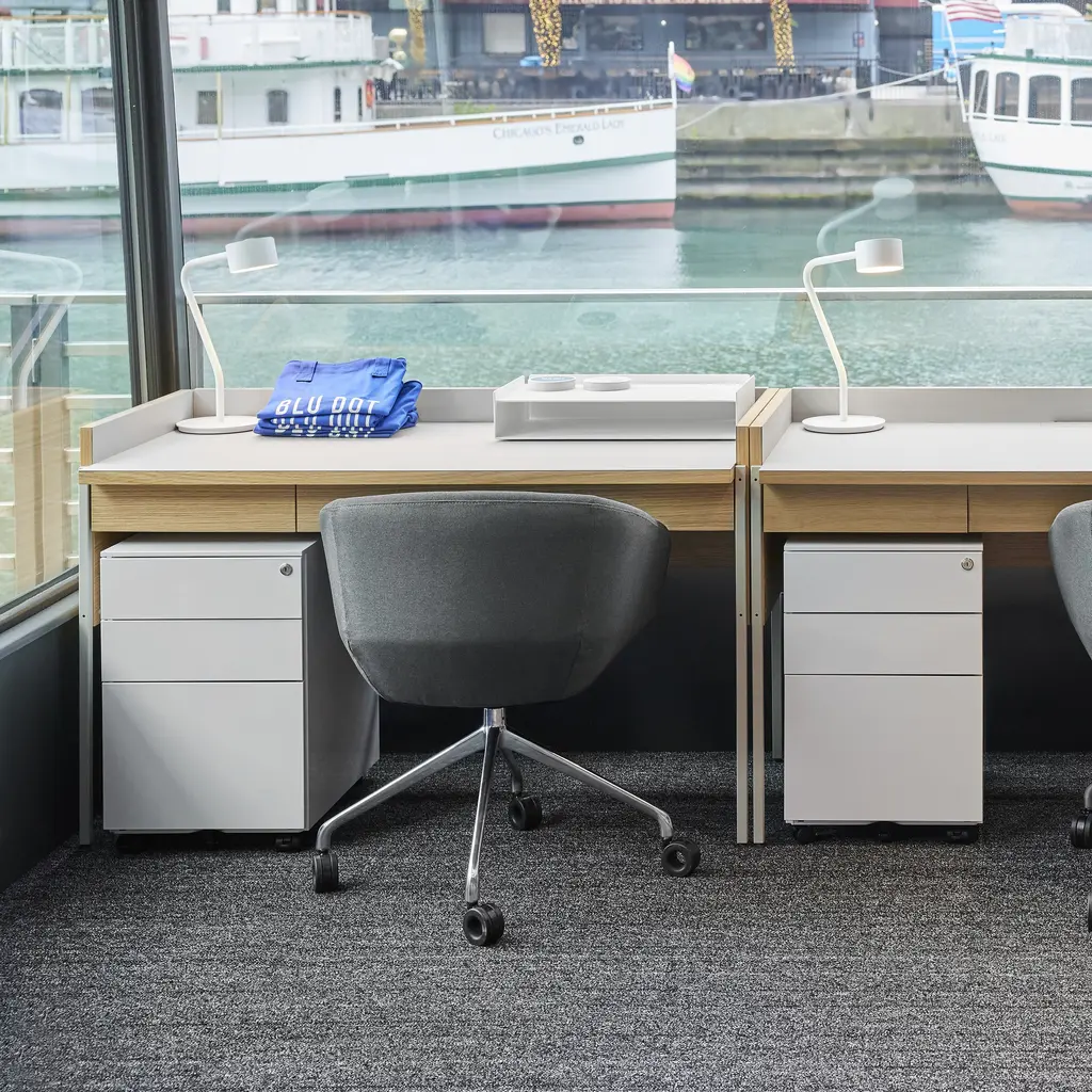 Efficiently organize your files with the sleek and minimalist Blu Dot Filing Cabinet No. 1. Constructed with a durable steel exterior and convenient wheels, this cabinet offers both functionality and style. Easily store standard sized files without sacrificing space or design. Highlights
