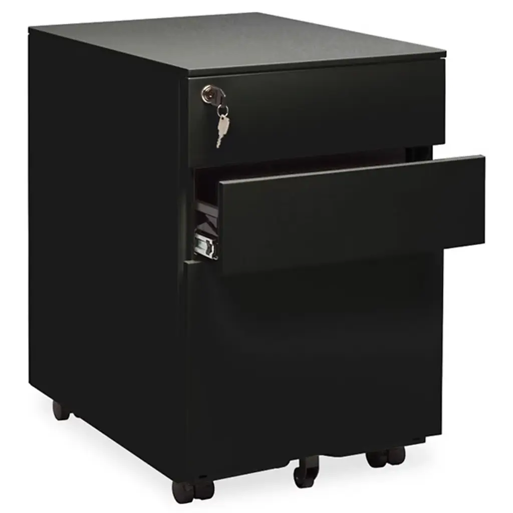 Straighten up. This modern file pedestal gets the job done. A clean, powder-coated steel exterior allows this unit to sit quietly in any environment, residential or commercial. It’s so unassuming we named it “Filing Cabinet No. 1.” Locking file storage accommodates standard letter sized files. Oh...and it has wheels, too.