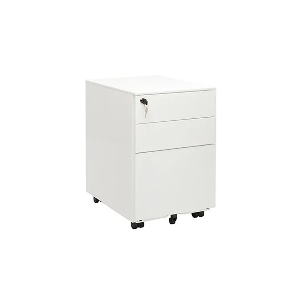So unassuming, they named it the Blu Dot Filing Cabinet No. 1. It is a simple 2-drawer cabinet made of steel in a variety of powder coated finishes. The locking casters offer the cabinet quick and easy mobility, and the bottom file drawer locks for extra security. Great for home or office.
