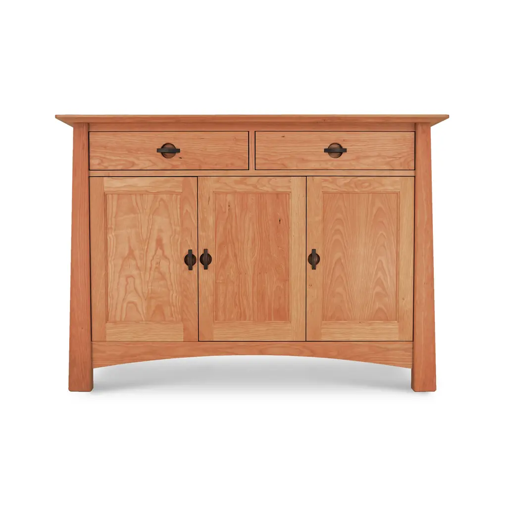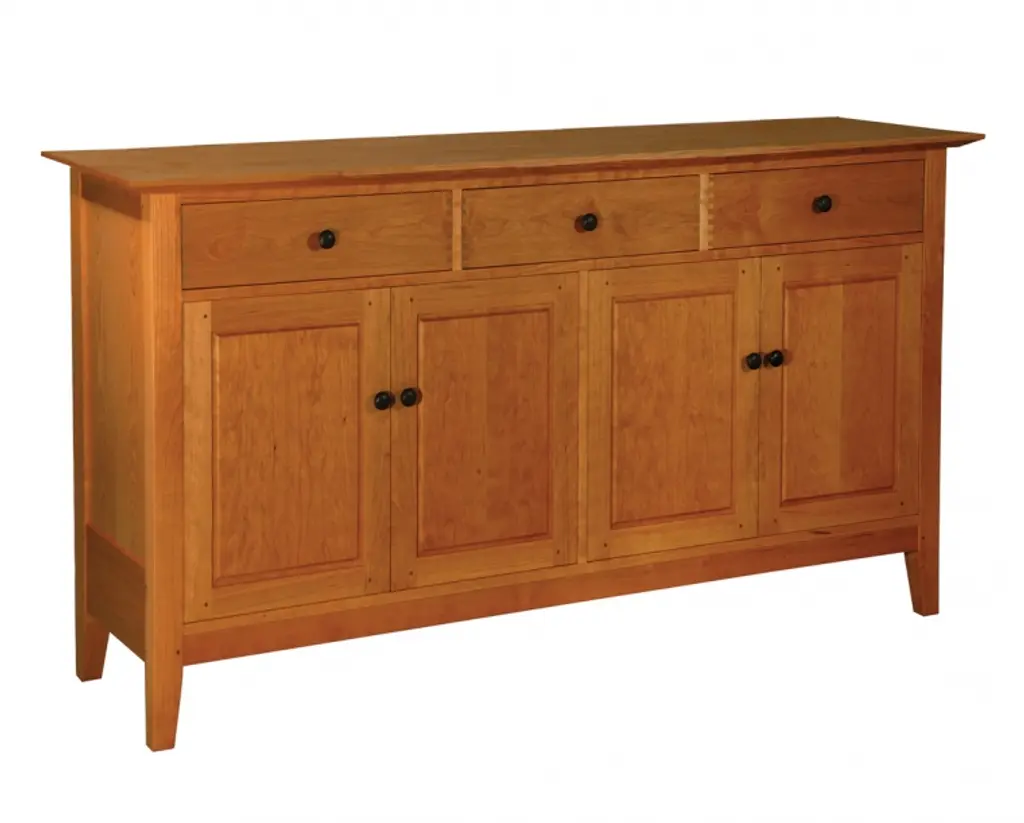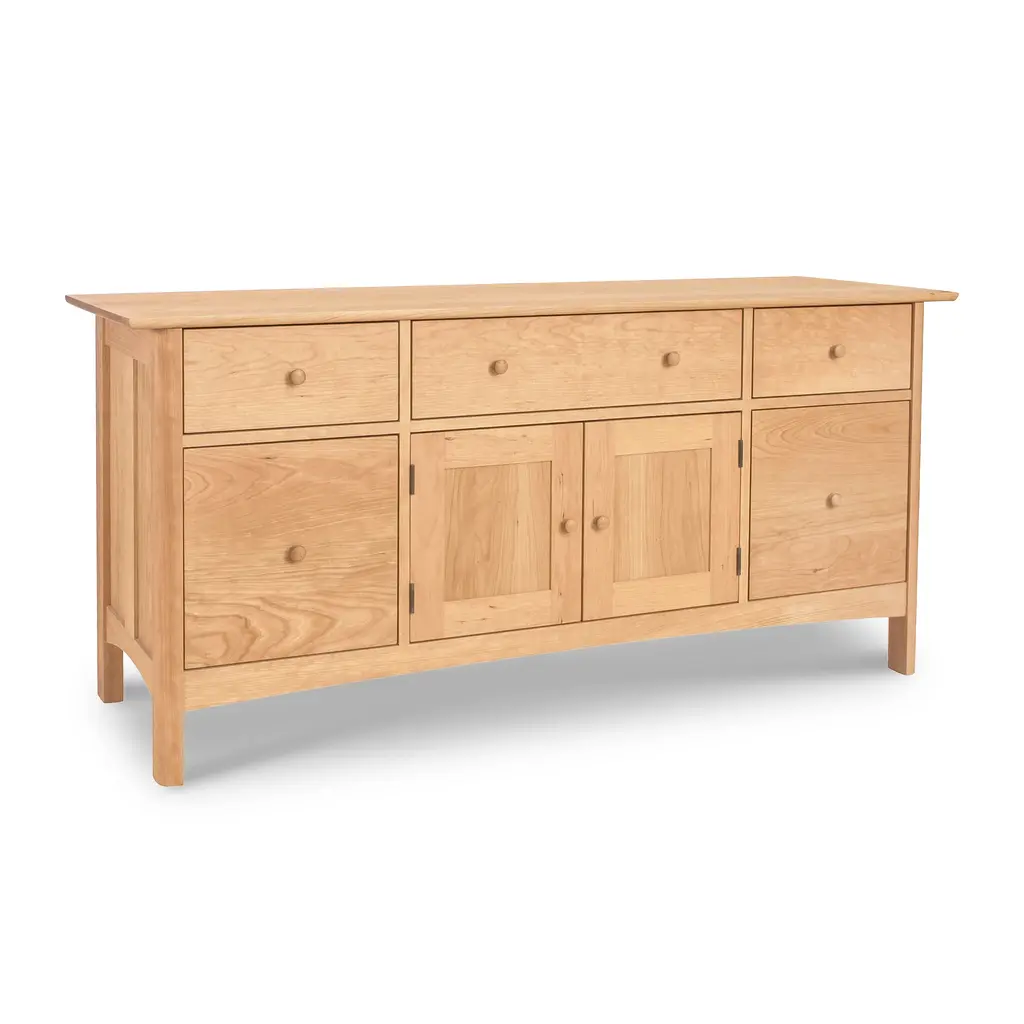 Our large luxury Heartwood Shaker Style File Credenza is handmade using premium solid hardwood and traditionally crafted to last a lifetime. This real wood Modern Shaker Credenza features 3 accessory drawers, 2 cupboards and 2 file drawer. Our Heartwood Shaker fine furniture collection is handcrafted to order in Vermont in your choice of solid cherry, maple, or walnut woods with a natural, eco-friendly oil finish that not only protects, but enhances the natural beauty of the wood.Base price represents credenza in natural cherryShown in natural cherryMatching furniture available in our Heartwood Shaker Furniture Collection Note: This file cabinet holds both letter size and legal-size documents. Standard letter size documents are configured front to back with one row for filing per drawer. Legal size documents are filed left to right with one row per drawer.