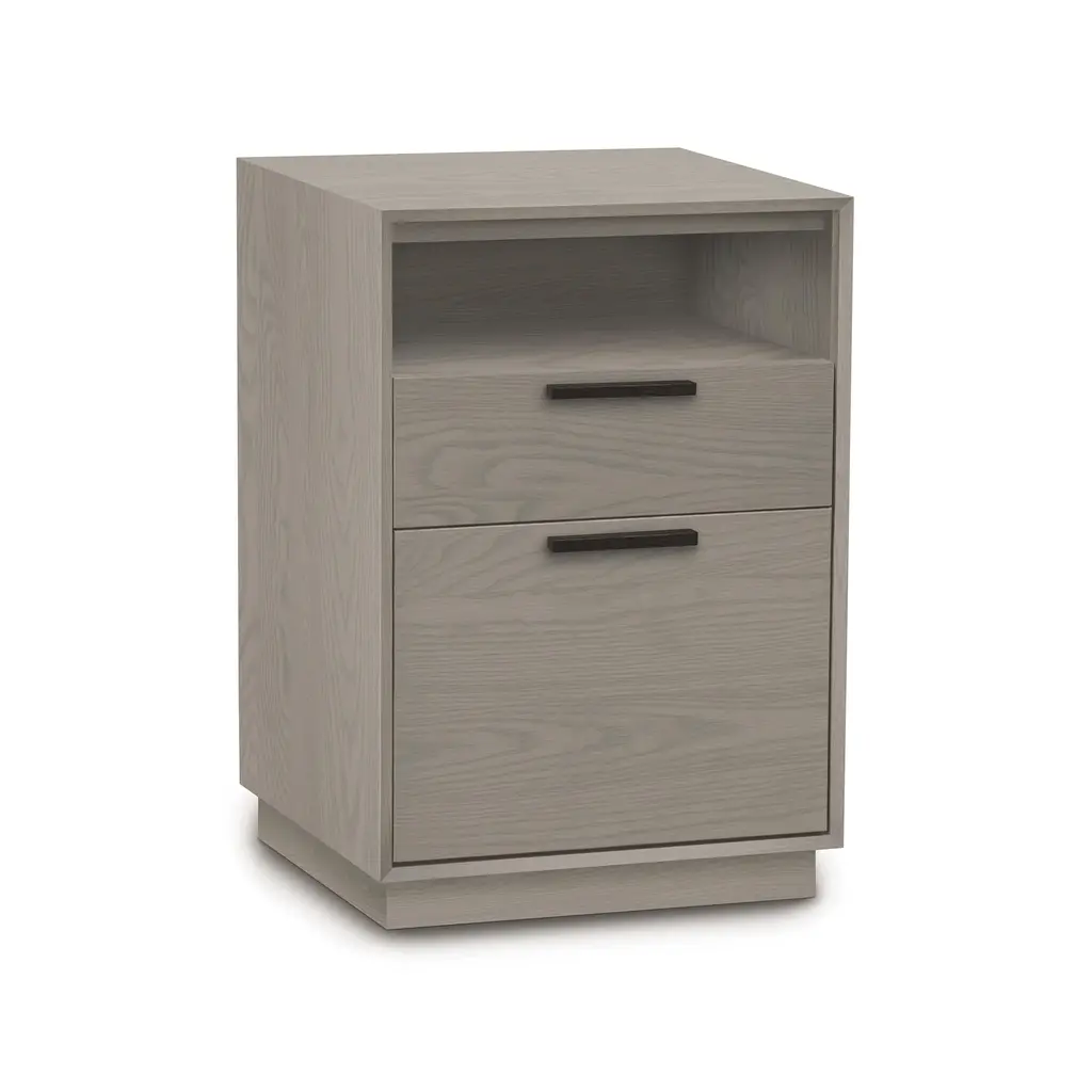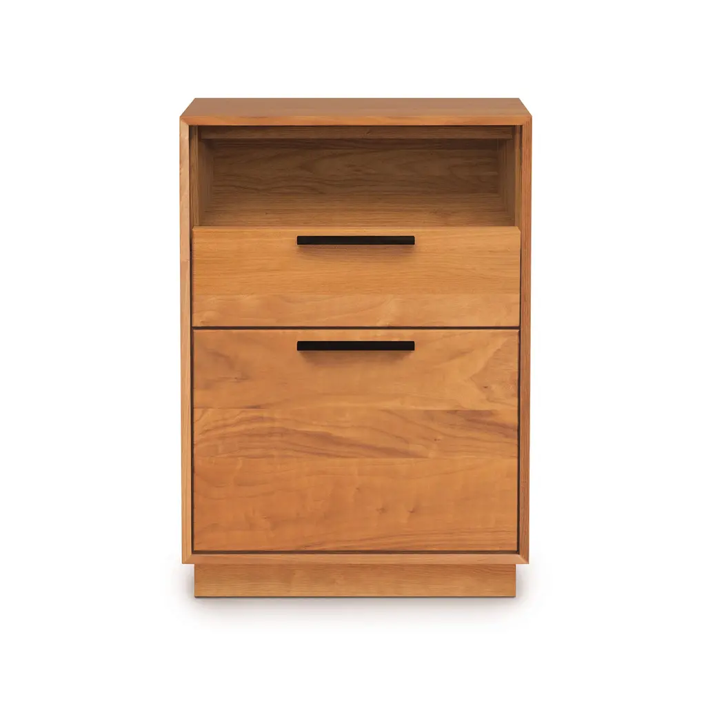 Do you like to rearrange your office space often? Or do you simply enjoy stylish office furniture that suites your own distinct style? No matter the answer, our Linear Narrow Rolling File Cabinet with Cubby is the must-have for any modern office. Designed by Copeland Furniture's skilled craftsmen, the Linear design features straight lines, crisp angles and no-nonsense drawer pulls all in a natural solid wood construction. Make your office truly your own with a versatile and compact Linear Rolling File Cabinet.Base price represents file cabinet in natural cherry with dark chocolate stained pullsShown in natural cherry with dark chocolate stained pullsMatching furniture available in our Linear Furniture Collection