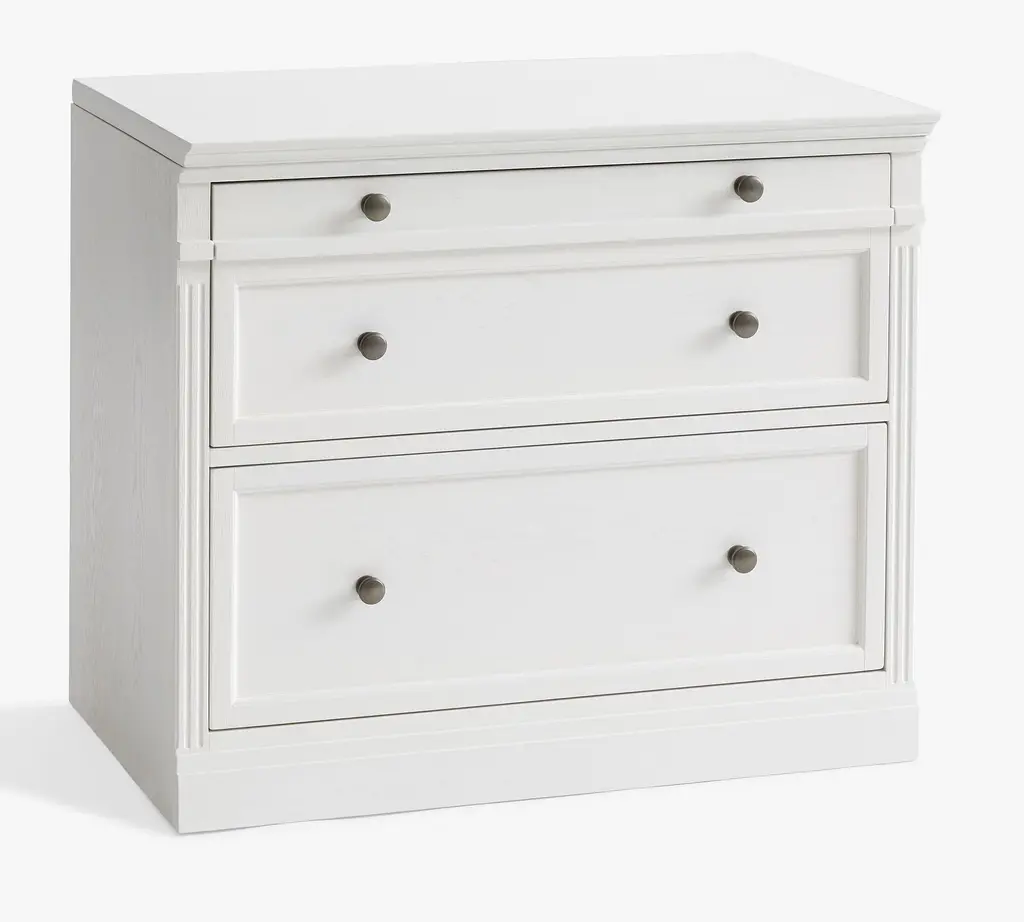 Classic details like crown molding, fluted posts and hand-applied finishes give this customizable collection timeless appeal. This lateral file cabinet rests on a plinth base and features two drawers to hold documents and office essentials. Designed to work seamlessly with the collection’s other modular components, it helps to create a functional and sophisticated workspace.