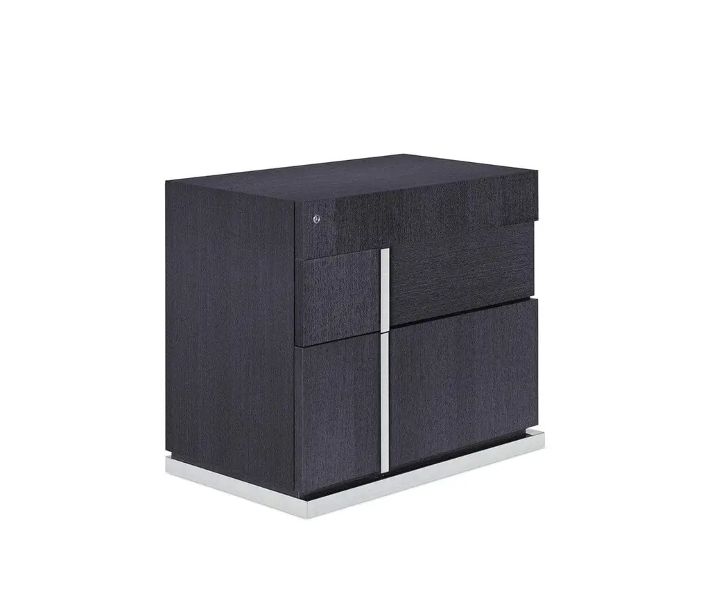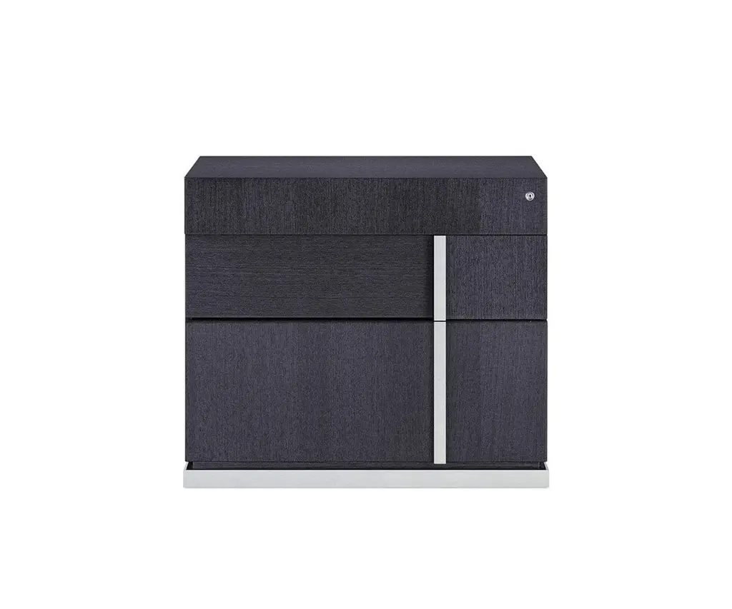 Made in Italy, the Mondiana Lateral File Cabinet streamlines your work space with ease. This clean, contemporary design features a high gloss finish over striking grey koto veneer, and a slender chrome drawer pull completes the look. A single locking drawer offers you space to tuck away items safely, while two drawers