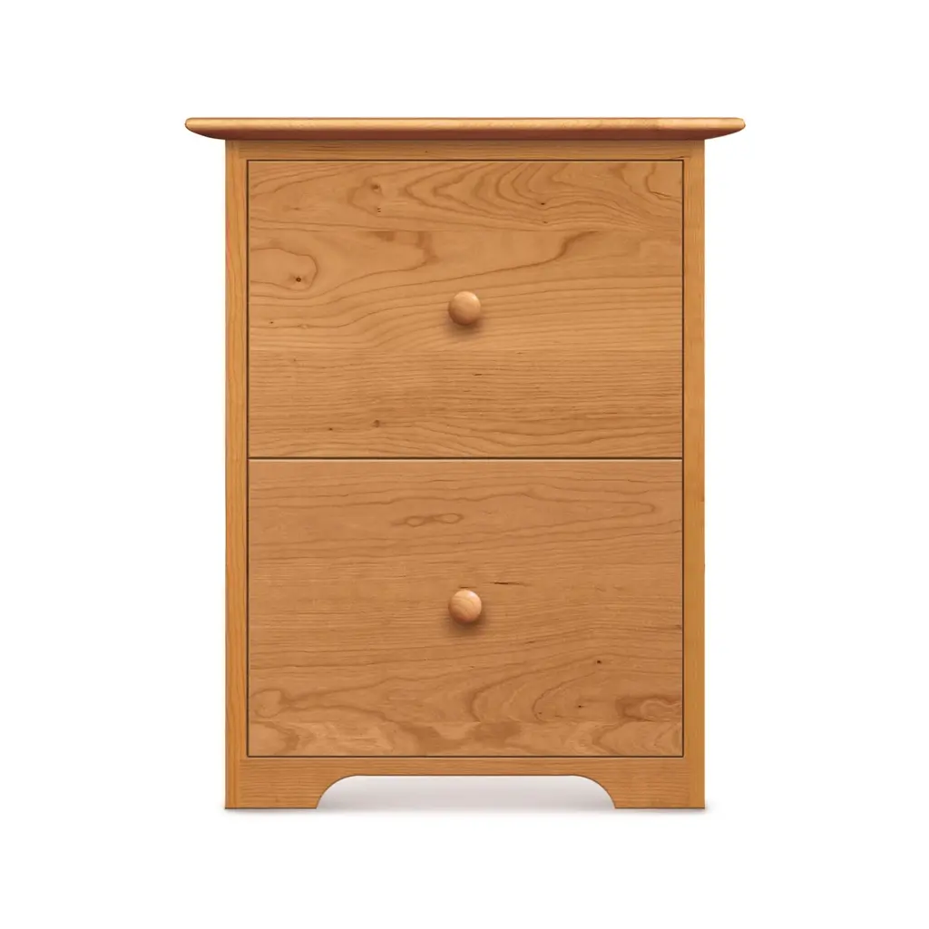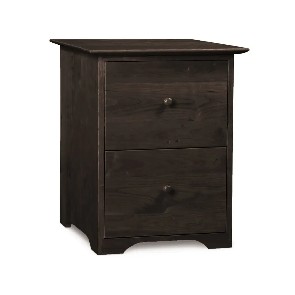Our Sarah Rolling 2-Drawer File Cabinet has classic American Shaker design. Customize online in your choice of wood color. Our Copeland Sarah Shaker Home Office Furniture Collection is handmade in Vermont using sustainably harvested woods.Construction details include solid natural wood frame and panel structural design, solid cherry wood top, 1/4" top-grade wood veneer panels integrated into the case sides and back, fully finished drawer boxes with solid natural wood drawer fronts/sides/backs, asymmetrical English dovetails and full extension file glides that allow file drawers to open wide enough for easy access to all contents. These heavy-duty glides are strong enough to support the heavy load associated with office storage. File cabinets also feature an anti-tip mechanism that allows only one file drawer to be opened at a time.Base price represents natural cherryShown in natural cherryMatching furniture available in our Sarah Shaker Furniture CollectionNatural variations in solid wood and hand applied finishes make each piece unique. Slight grain and finish irregularities tell you that the furniture has been crafted from solid wood and are considered hallmarks of quality.Note: This file cabinet holds standard letter size documents in a front to back configuration with one row for filing per drawer.