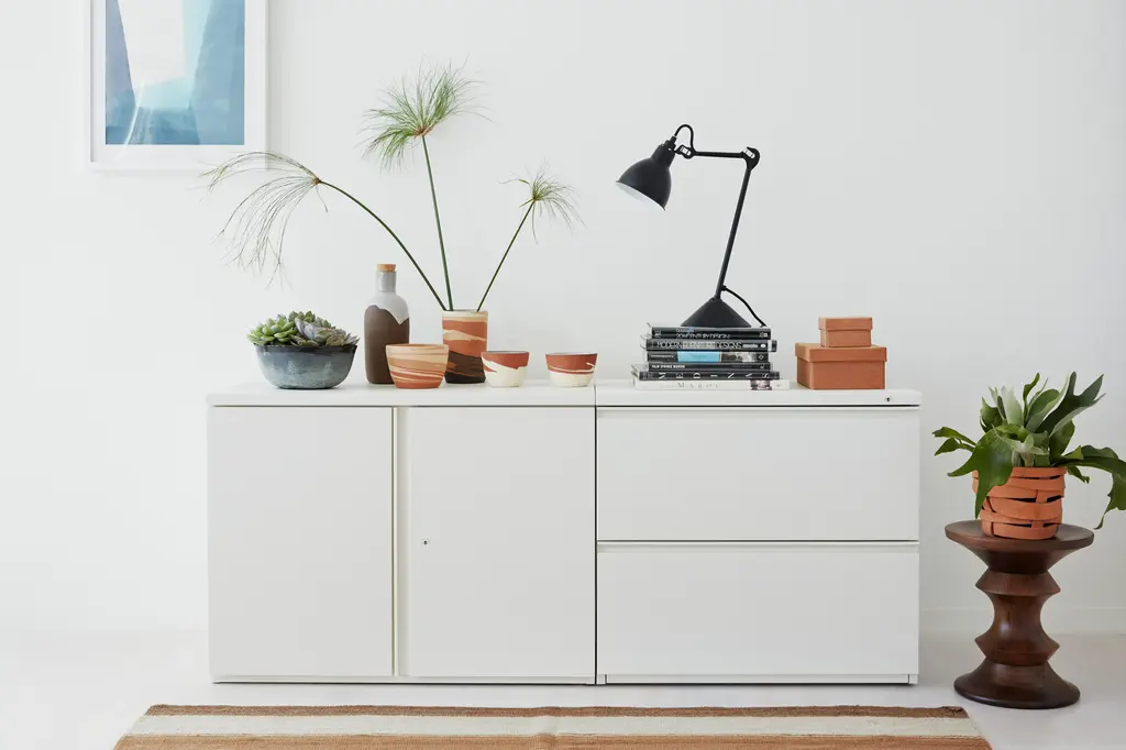 Available in neutral colors that complement any environment, the Tu W-Pull Storage Case offers a stylish way to keep important oversized items nearby. The lockable office storage cabinet, which is 20 inches deep and 30 inches wide, comes in a 26-inch height that can fit beneath a desk as well as a generous 38-inch version. Both sizes of this modern office storage case are made of powder-coated steel and fitted with floor glides.
