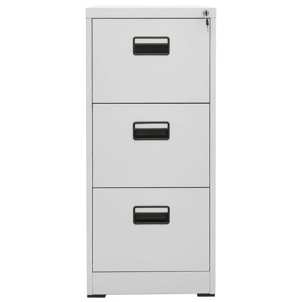 This filing cabinet isn’t just for storage; it's a must-have furniture piece that combines style and practicality. With its sleek light grey finish, it spruces up your home office while keeping your important documents tidy. Ample Storage: It’s got three spacious drawers, giving loads of room for keeping your letter and legal files organized, making them easy to reach when you need them.Durable Construction: Built from robust steel, it’s tough enough for everyday use and keeps its quality. The powder-coated finish prevents scratches and wear.Effortless Sliding: The ball-bearing slides give a smooth opening, so grabbing documents is quick and hassle-free.Secure Locking: The cam lock keeps your files safe from prying eyes, giving you peace of mind.Stylish Design: With its industrial look and light grey color, it’s a great fit for modern offices or professional spaces, merging style with functionality.