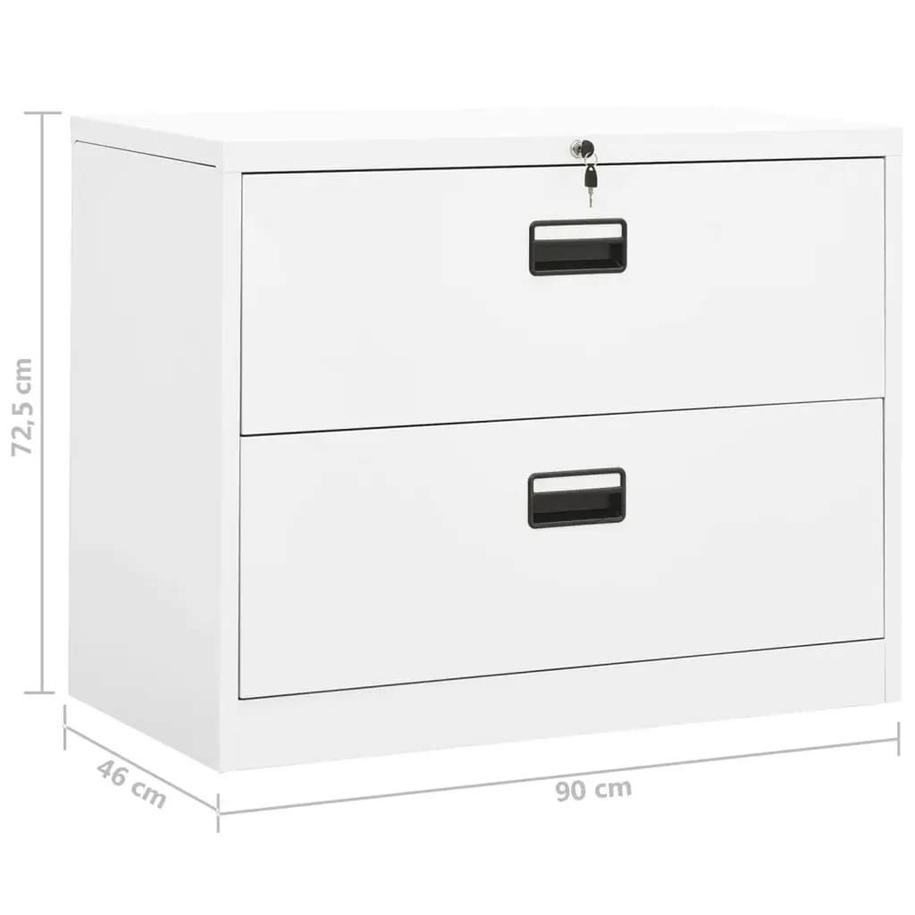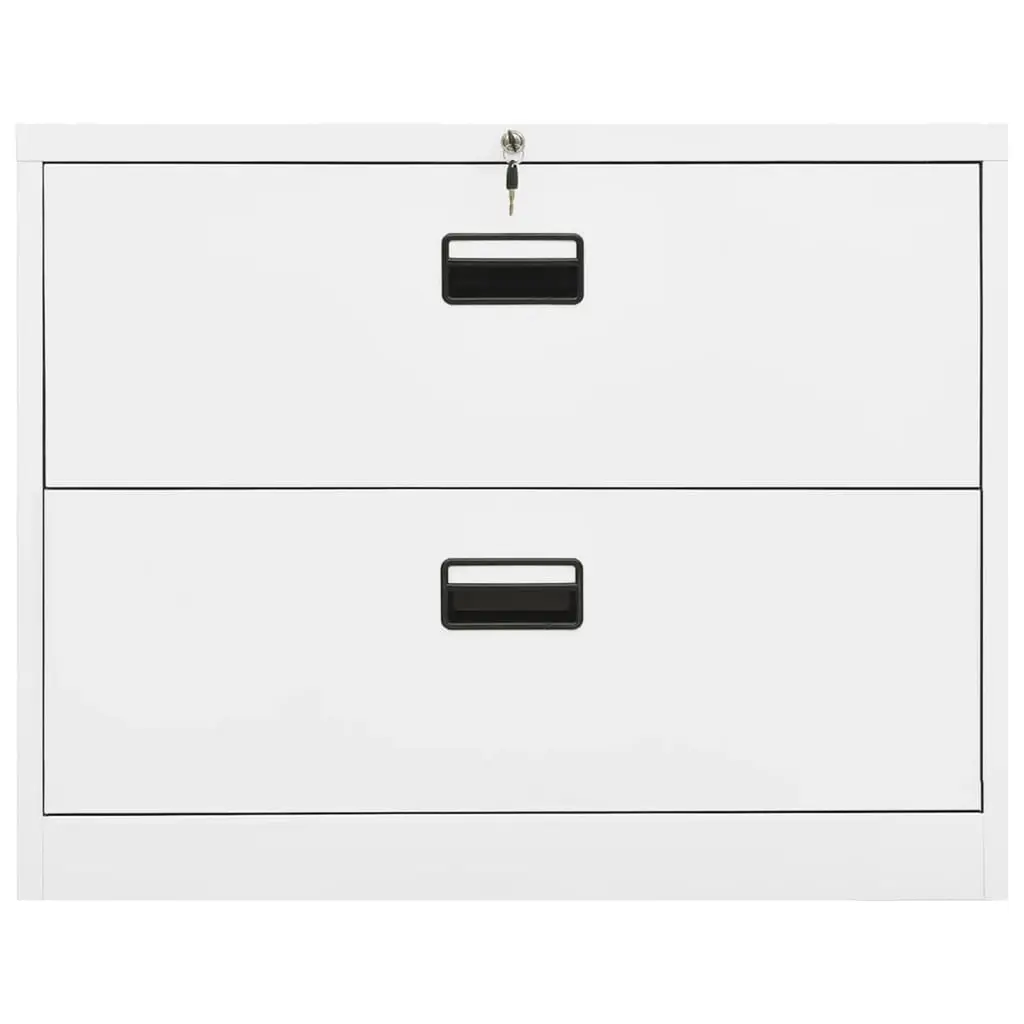 This white steel filing cabinet perfectly combines style and practicality, ready to tackle any office setup. With its modern and minimalist vibe, it fits in with various decor styles while offering essential storage for important documents, making it a great solution for businesses and home offices alike. Modern Appeal: The cabinet's sleek design in high-quality steel gives a clean, professional vibe that lifts the workspace. This trendy piece helps keep a classy atmosphere in offices or home work areas.Spacious Drawers: Two fully extendable drawers offer plenty of space for letter, legal, and A4 files. The ball-bearing slides ensure easy access to every document with no fuss.Durable Steel Build: Made from high-quality steel with a matte finish, this cabinet can handle daily use while keeping its stylish appearance intact. The painted finish helps resist wear and tear.Secure Storage: Fitted with a cam lock for security, this filing cabinet gives you peace of mind for storing sensitive business documents and personal files, perfect for corporate and legal settings.Ideal Dimensions: At 35.4 in long, 18.1 in wide, and 28.5 in high, it slots under desks or into compact spaces easily, making it a handy addition to both small and larger offices.