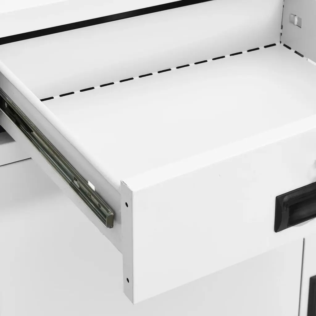 This Modern White Steel Office Cabinet combines stylish design with practical storage. With dimensions of 35.4 inches wide, 15.7 inches deep, and 40.2 inches high, it provides loads of space for files and documents, helping keep your office clutter-free. The fresh white finish not only lifts your office's look but also streams in tough steel construction, perfect for keeping things organized in a busy work setting. Height-Adjustable Design: This cabinet has shelves you can adjust to fit your needs, making it perfect for various document sizes.Double Locking Mechanism: The built-in cam lock secures your important documents, shielding them from prying eyes, ideal for any professional environment.Smooth Operations: Ball-bearing drawer slides ensure even heavy files open easily, boosting your office efficiency.Sturdy Steel Construction: Made from thick, powder-coated steel, it’s designed to last and mixes well with any office decor.Multi-Functional Usage: Specifically for keeping files sorted, this cabinet fits into any professional setting, making sure files are easy to find and use daily.
