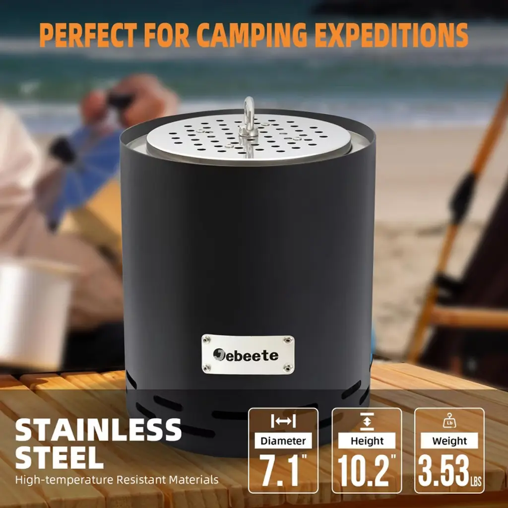 Experience intimate outdoor gatherings with this compact smokeless tabletop fire pit. Constructed from premium stainless steel and heat-resistant materials, it offers safe, low-smoke warmth for patios, decks, or camping adventures. Its portable design allows effortless setup, and the sturdy base ensures stability while creating a cozy ambiance for roasting, grilling, or relaxing evenings with family and friends.