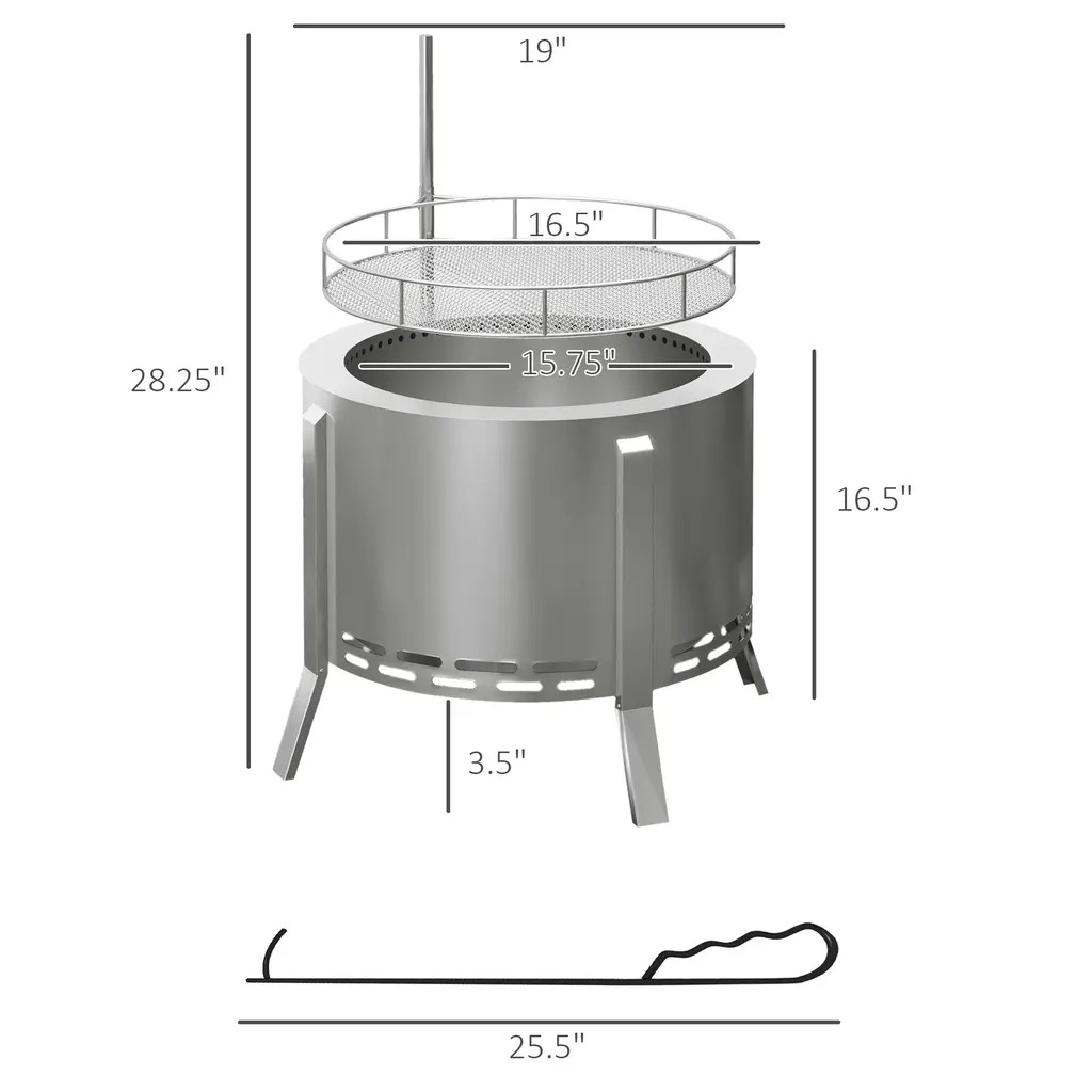 2-In-1 Smokeless Fire Pit, Bbq Grill,portable Wood Burning Firepit With Cooking Grate And Poker, Low Smoke Camping Bonfire Stove - Stainless Steel