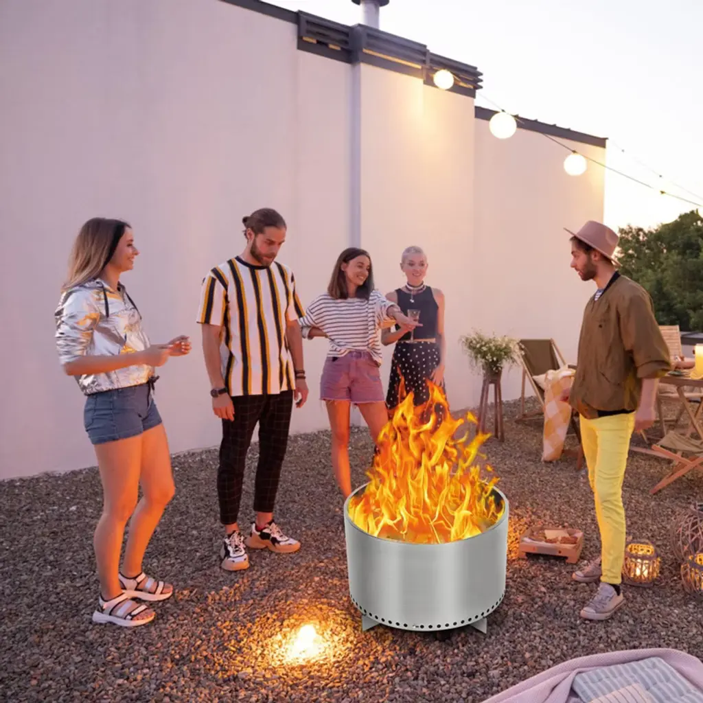 TROPOW 20.5¡¯¡¯ Smokeless Stainless Steel Fire Pit with Air Switch & Ash Pan ¨C 360¡ã Radiant Heat for Camping, Patio & BackyardProduct Dimensions: 22.44"D x 22.44"W x 15"HBrand: TROPOWFinish Type: PolishedFuel Type: WoodColor: SilverUPC: 199414547048Manufacturer: GarveeProduct Features:?? Adjustable Air Switch for Flame ControlPatented air switch design allows you to regulate airflow, adjusting the flame size and burn speed with ease. The fixed stand enables safe use on terraces, balconies, and other heat-sensitive surfaces.?? Truly Smokeless & High-Efficiency BurnDesigned with a double-wall structure, this fire pit enhances oxygen flow and promotes secondary combustion, effectively reducing smoke before it reaches you. Say goodbye to smoky clothes and hair.?? Durable Stainless Steel & Easy CleanupCrafted from 304 stainless steel for long-lasting durability. The bottom stand and air holes help shield surfaces from heat damage. A removable ash pan makes cleanup effortless¡ªjust lift, empty, and you're done.?? 360¡ã Radiant Heat DistributionIts circular design offers consistent flames and evenly distributed warmth in all directions¡ªperfect for groups to gather around and enjoy a cozy outdoor experience.?? Perfect for Outdoor GatheringsMeasuring 20.5¡± in diameter, this portable fire pit comfortably accommodates 4¨C10 people. Ideal for camping trips, patio hangouts, or backyard bonfires¡ªbringing light, warmth, and atmosphere to your outdoor moments.