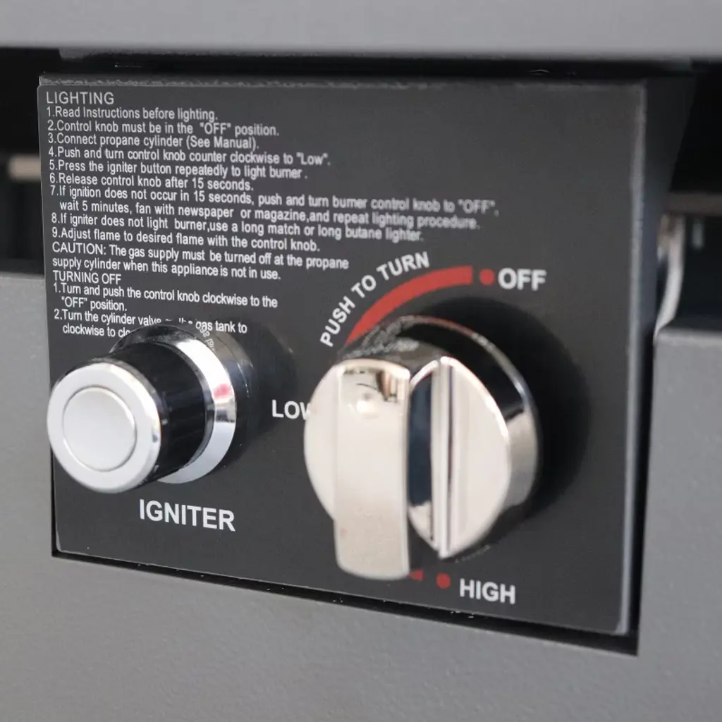 This 25" H x 42" W steel fire pit table offers a sleek modern design combined with functional outdoor heating, perfect for patios, decks, or backyard gatherings. Constructed with a durable steel frame and stainless steel burning area, it delivers 50,000 BTU of adjustable warmth. Compatible with propane and convertible to natural gas (conversion kit sold separately), it includes lava rock filler, a protective lid, and cover. The side door allows easy access to the hidden fuel tank, while the integrated ignition provides effortless operation.