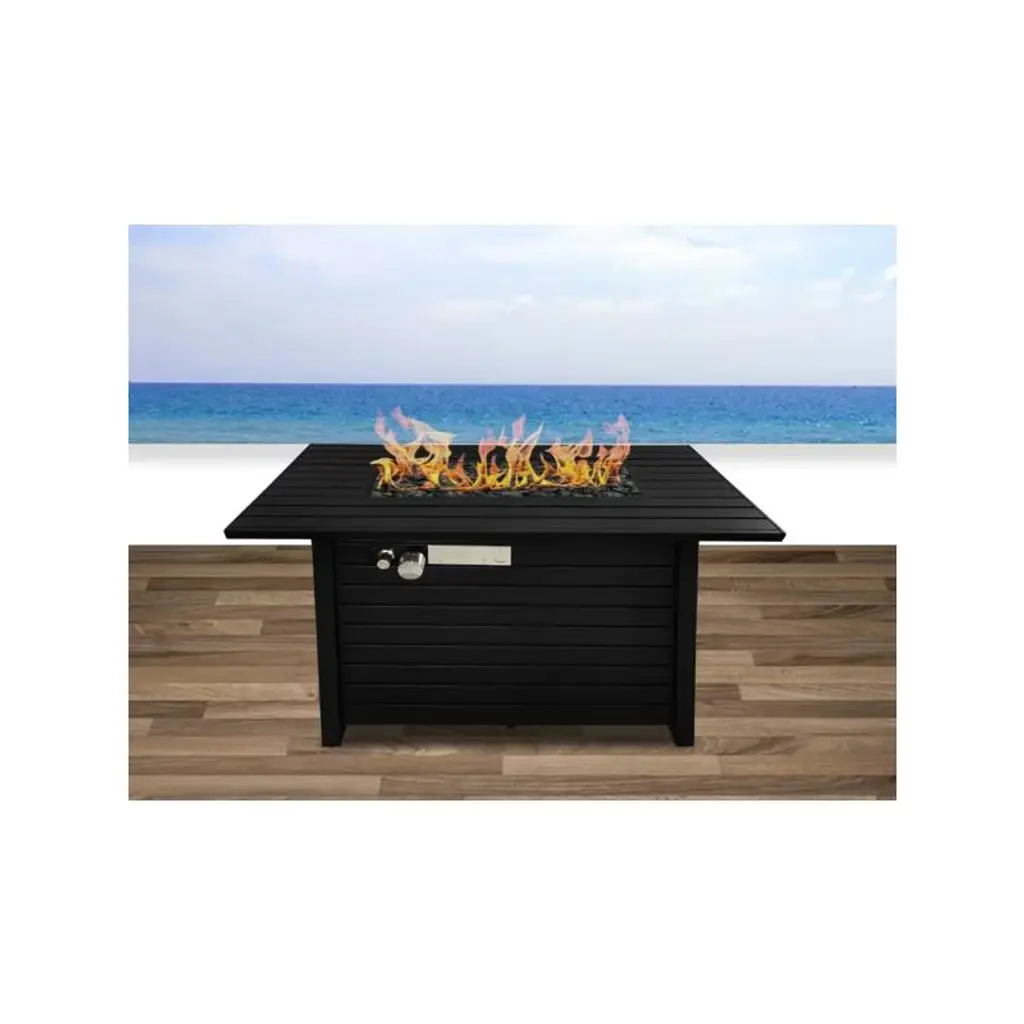 25" H X 42" W Steel Outdoor Fire Pit Table With Lid (Black)