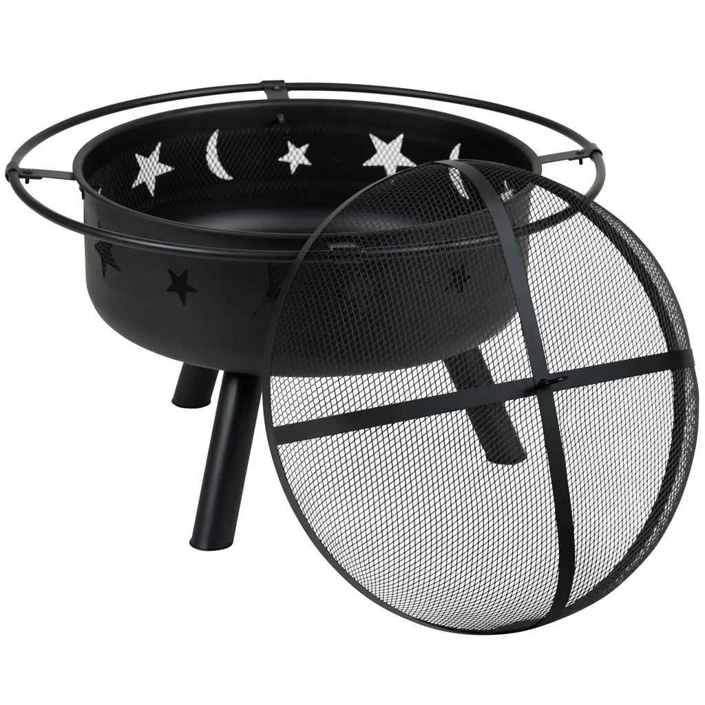 3 Piece Charlestown Poly Resin Wood Adirondack Chair Set With Fire Pit - Star And Moon Fire Pit With Mesh Cover