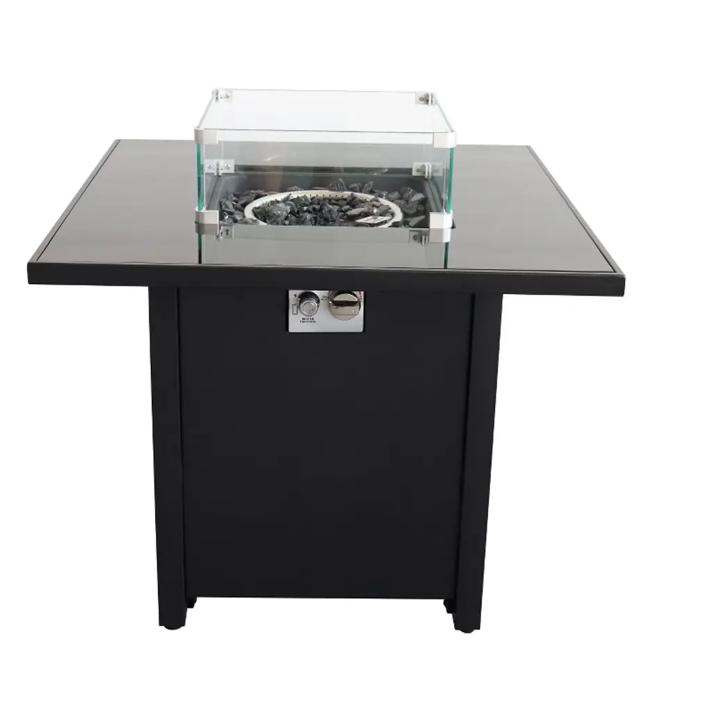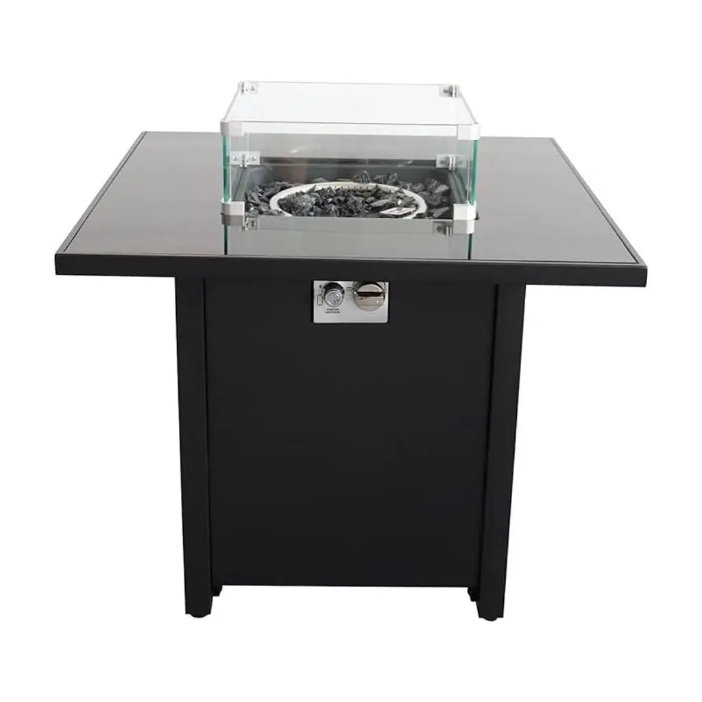 This 30 inch H x 30 inch W steel outdoor fire pit table provides a stylish and durable centerpiece for backyard, garden, or patio gatherings. Crafted with high-quality steel in a black finish, it offers long-lasting weather resistance. The propane or natural gas-compatible burner delivers 40000 BTU heat output with ETL certification for safety (20 lb propane tank not included). Push-button ignition allows easy flame control, and the table includes lava rocks as filler, a lid, protective cover, and a wind shield for convenience and safety. Suitable for outdoor use, this fire pit requires a natural gas conversion kit if using natural gas (not included).