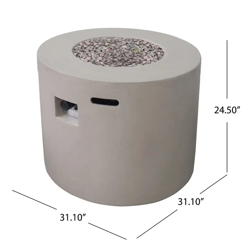 31 Inch Round Outdoor Fire Pit With 40,000 Btu And Hand Crafted Concrete Design