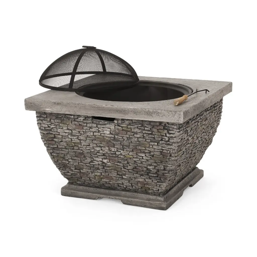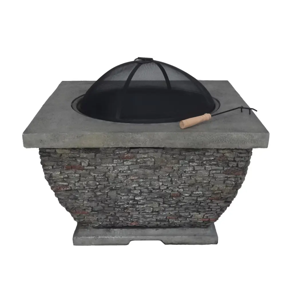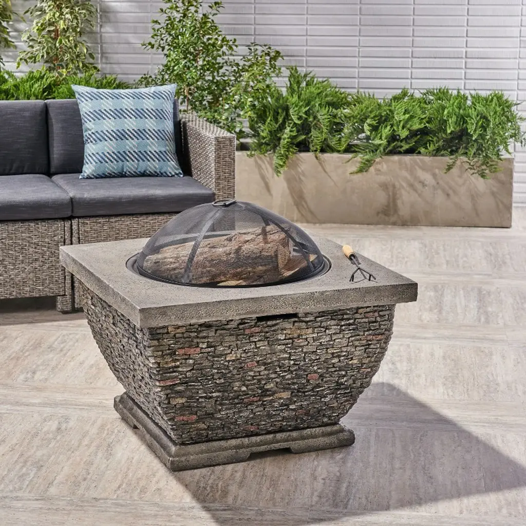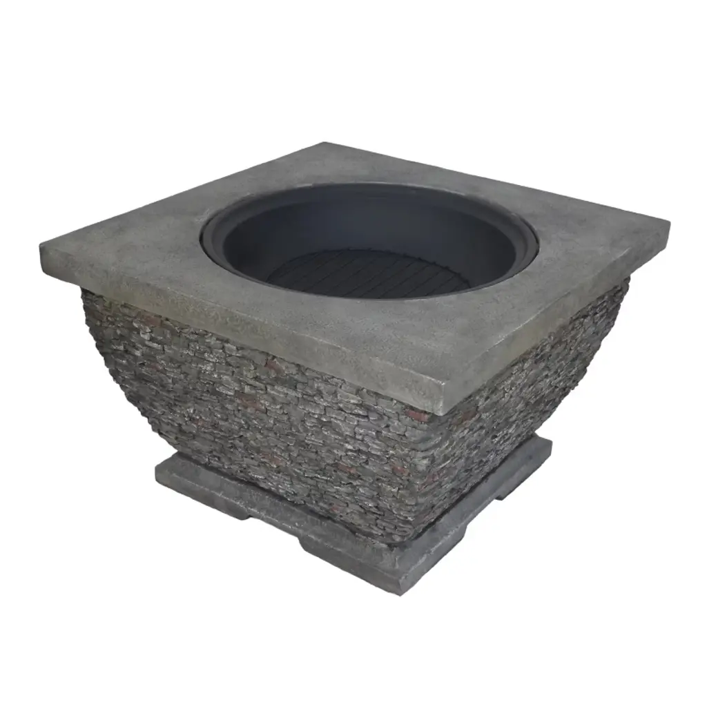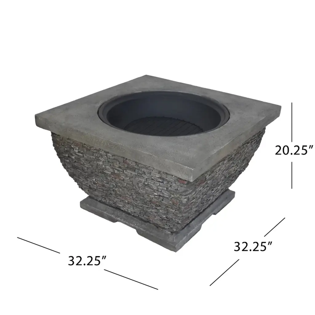 32" Mgo Light-weight Concrete Wood Burning Square Fire Pit, Grey