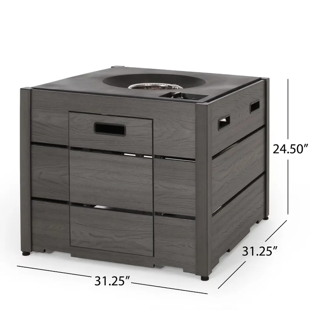 40,000 Btu Square Outdoor Fire Pit With Wpc Base And Lightweight Concrete Top
