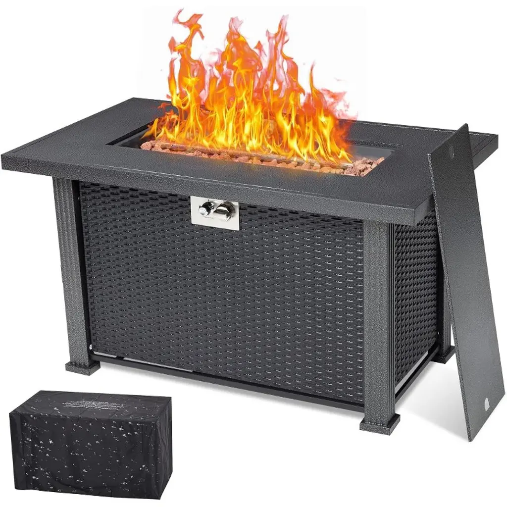 44" Gas Fire Pit, 50000btu Rectangle Propane Fire Table With Cover & Rain Cover, Csa Certified, Black