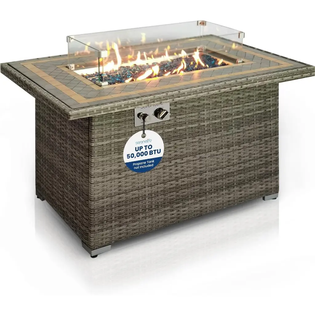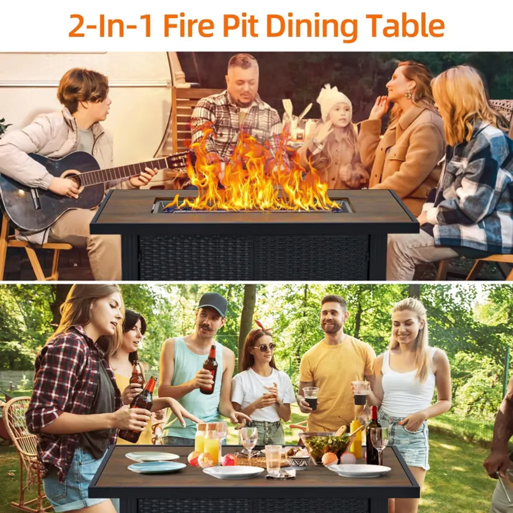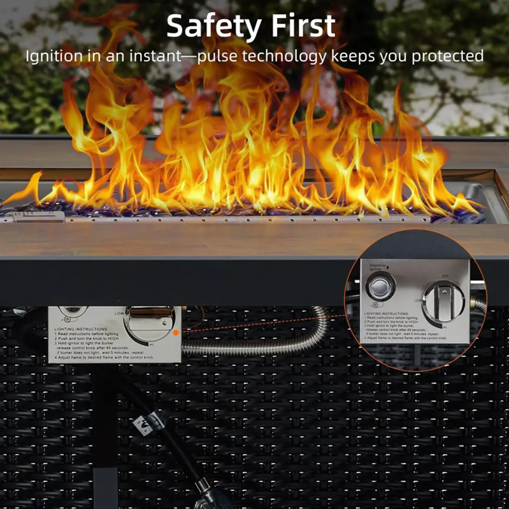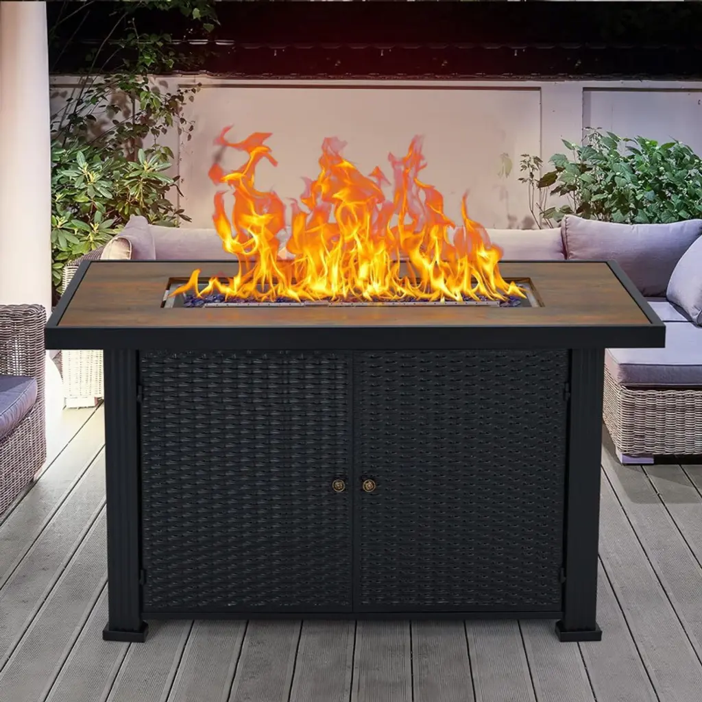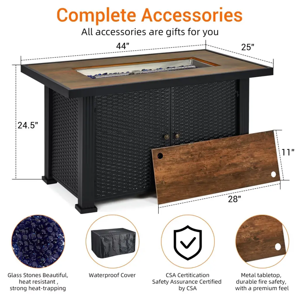 44 Inch Propane Fire Pit Table, 50000btu Rectangle Fire Table With Cover & Rain Cover, Sturdy Steel And Iron Fence Surface, Csa Safety Certified,
