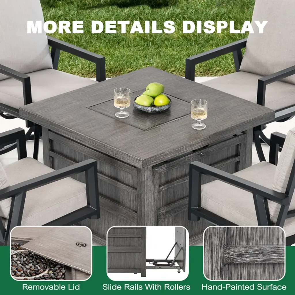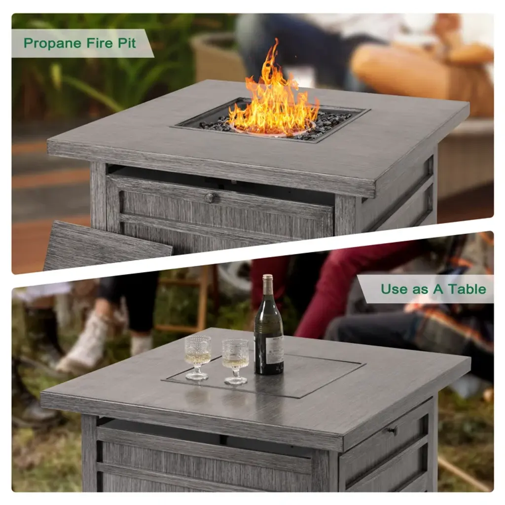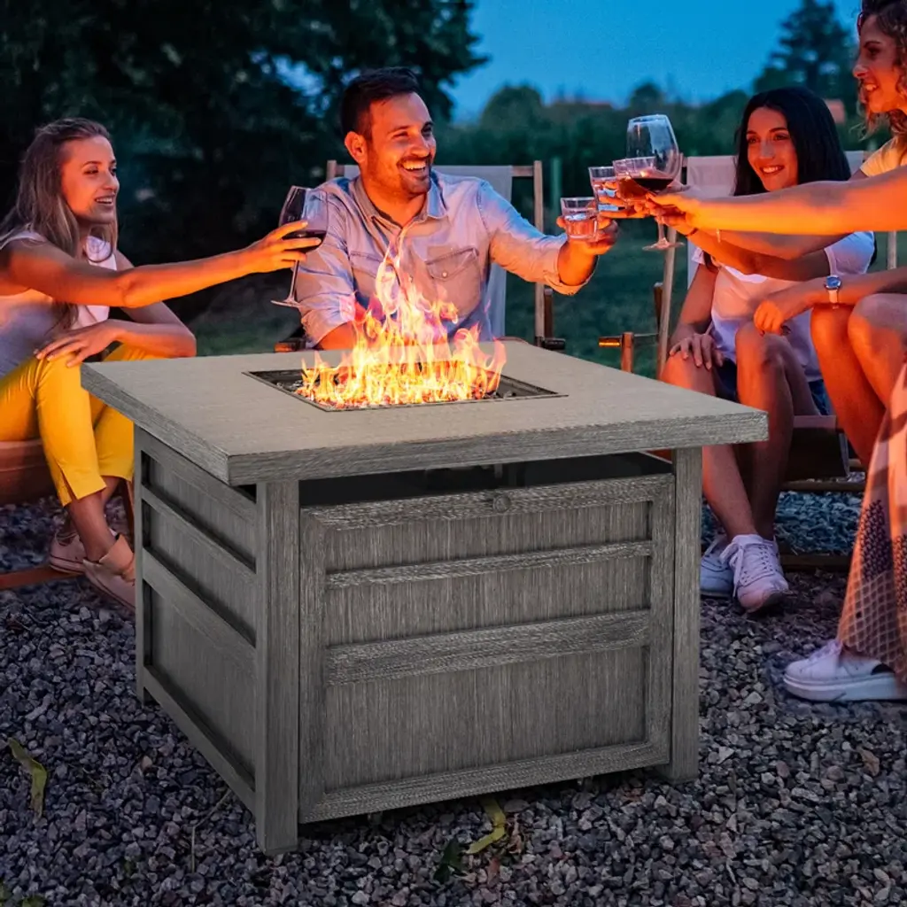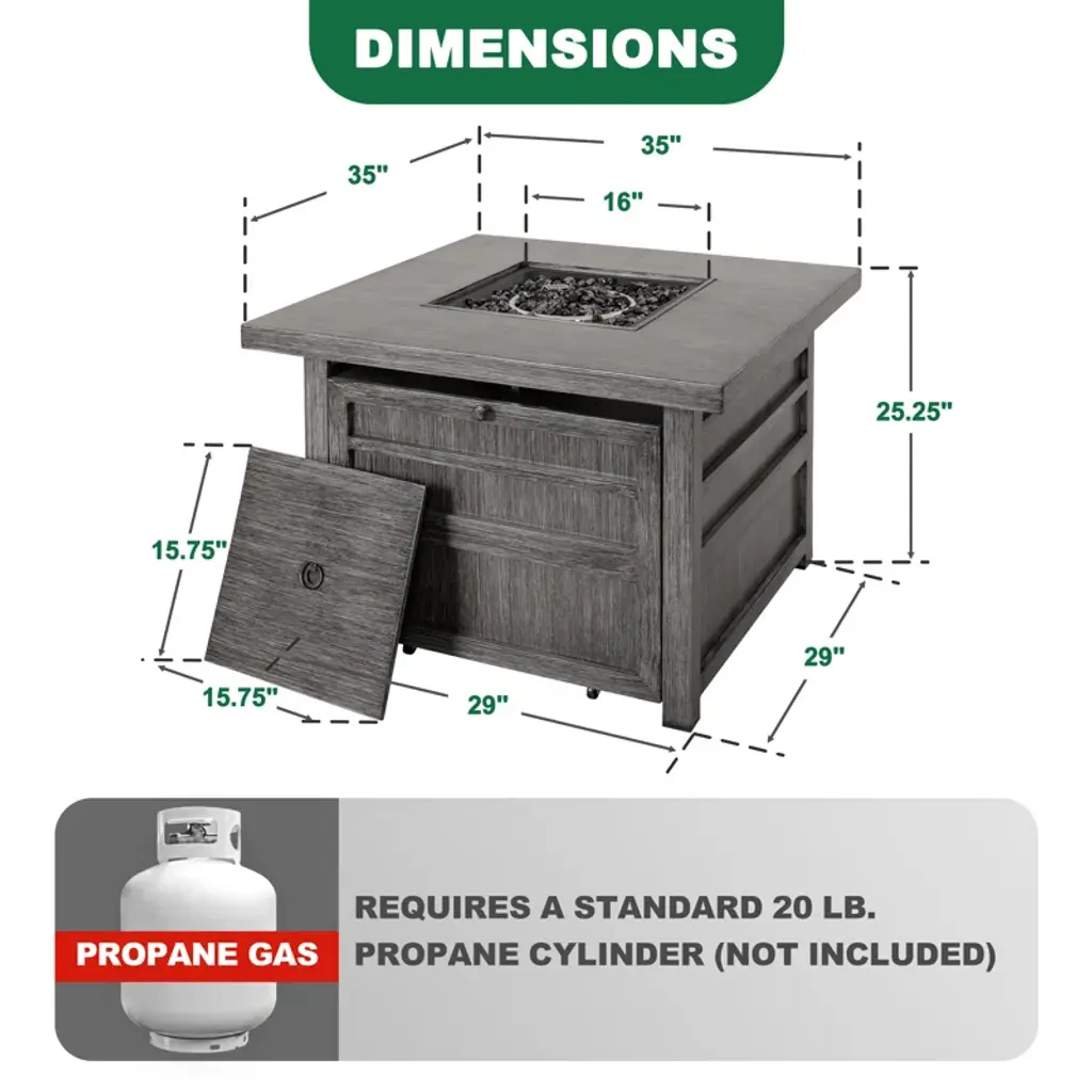 50,000 Btu Propane Fire Pit For Outdoor, 35” Square Fire Table With Lid