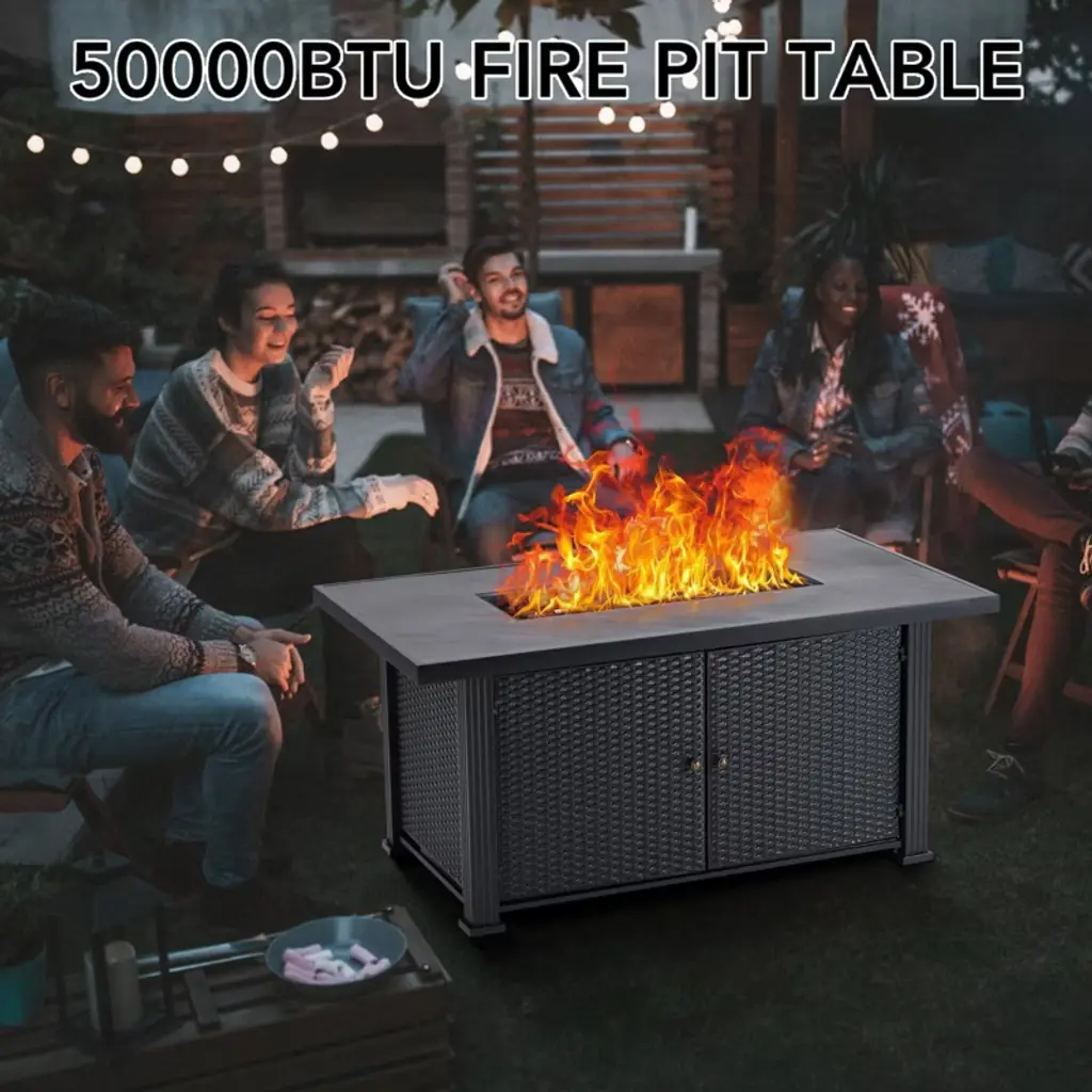 52" Propane Fire Pit Table, 50000btu Rectangle Fire Table With Cover & Rain Cover, Sturdy Steel And Iron Fence Surface, Csa Safety Certified