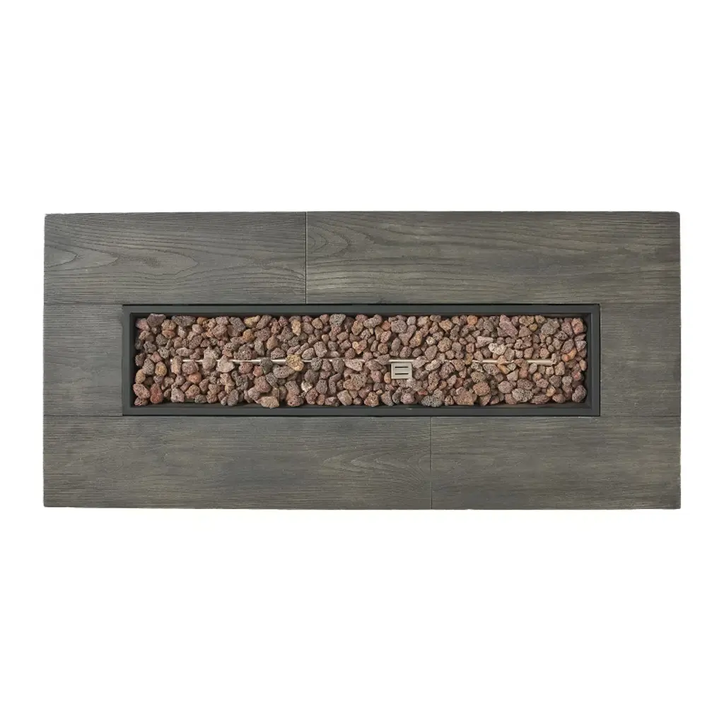 56 Inch Rectangular Outdoor Fire Pit With 50,000 Btu And Faux Wood Concrete Finish